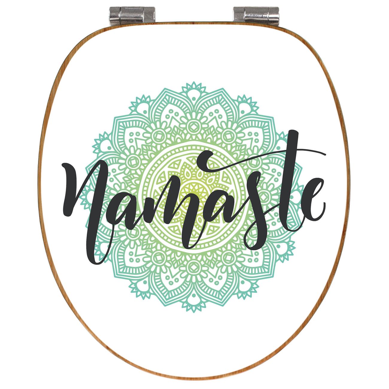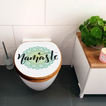 Mit dem banjado Toilettensitz in Bambus verbinden Sie Design und Funktionalität. Sie erhalten den WC-Sitz mit bewährter Holz Qualität und Universal Scharnieren. Das Motiv Motiv Namaste Mandala besteht aus einer schutzlaminierten Motivfolie, die durch das Schutzlaminat zusätzlich vor Kratzern schützt. Durch diesen Motivdruck wird der WC-Sitz zu einem Blickfang in Ihrem Bad.