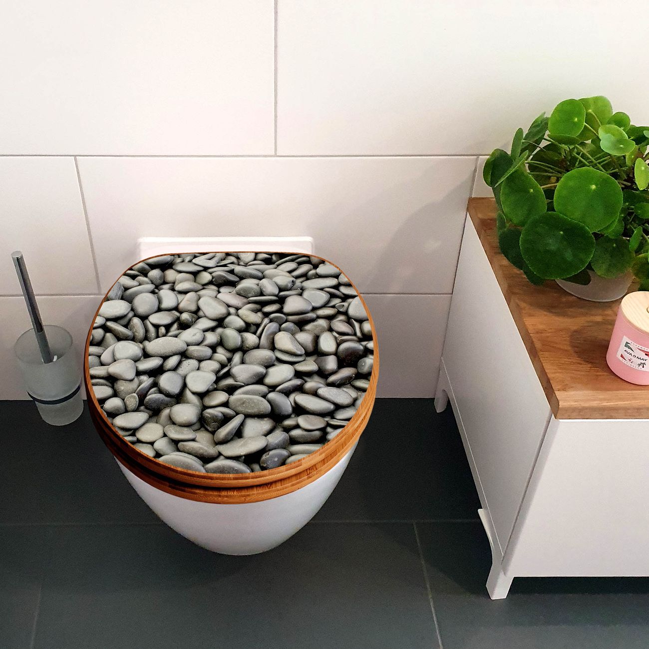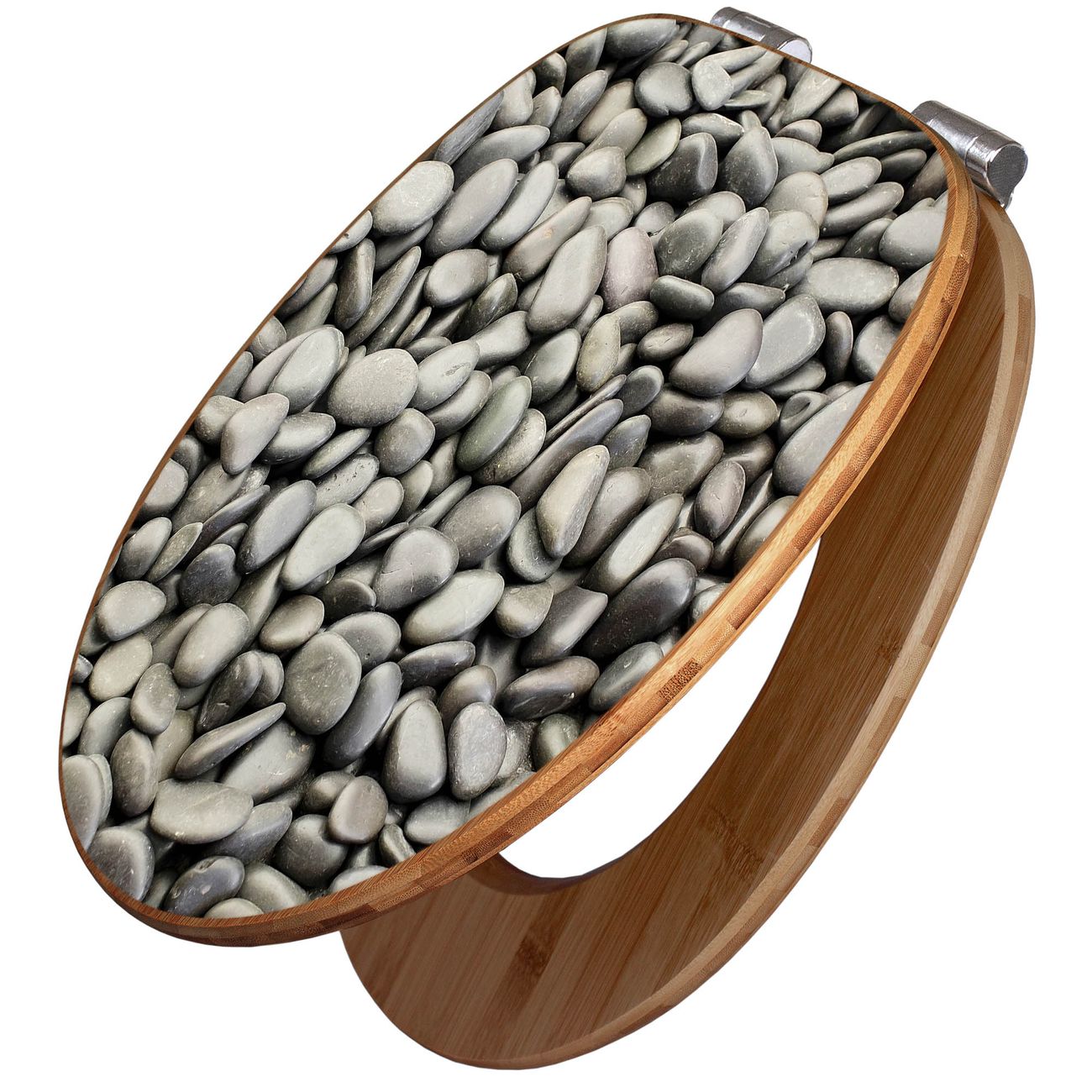 Design WC-Sitz Bambus Absenkautomatik Motiv Nasse Kiesel