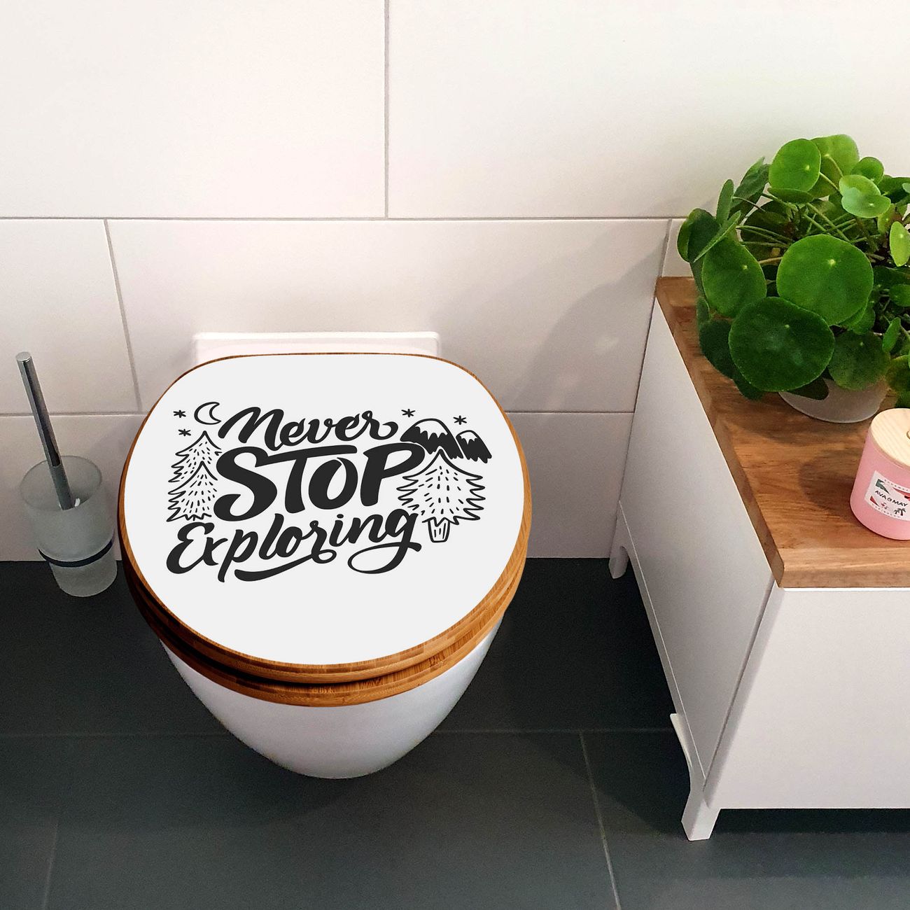 Mit dem banjado Toilettensitz in Bambus verbinden Sie Design und Funktionalität. Sie erhalten den WC-Sitz mit bewährter Holz Qualität und Universal Scharnieren. Das Motiv Motiv Never stop Exploring besteht aus einer schutzlaminierten Motivfolie, die durch das Schutzlaminat zusätzlich vor Kratzern schützt. Durch diesen Motivdruck wird der WC-Sitz zu einem Blickfang in Ihrem Bad.
