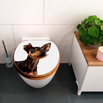 Mit dem banjado Toilettensitz in Bambus verbinden Sie Design und Funktionalität. Sie erhalten den WC-Sitz mit bewährter Holz Qualität und Universal Scharnieren. Das Motiv Motiv Niedlicher Welpe besteht aus einer schutzlaminierten Motivfolie, die durch das Schutzlaminat zusätzlich vor Kratzern schützt. Durch diesen Motivdruck wird der WC-Sitz zu einem Blickfang in Ihrem Bad.