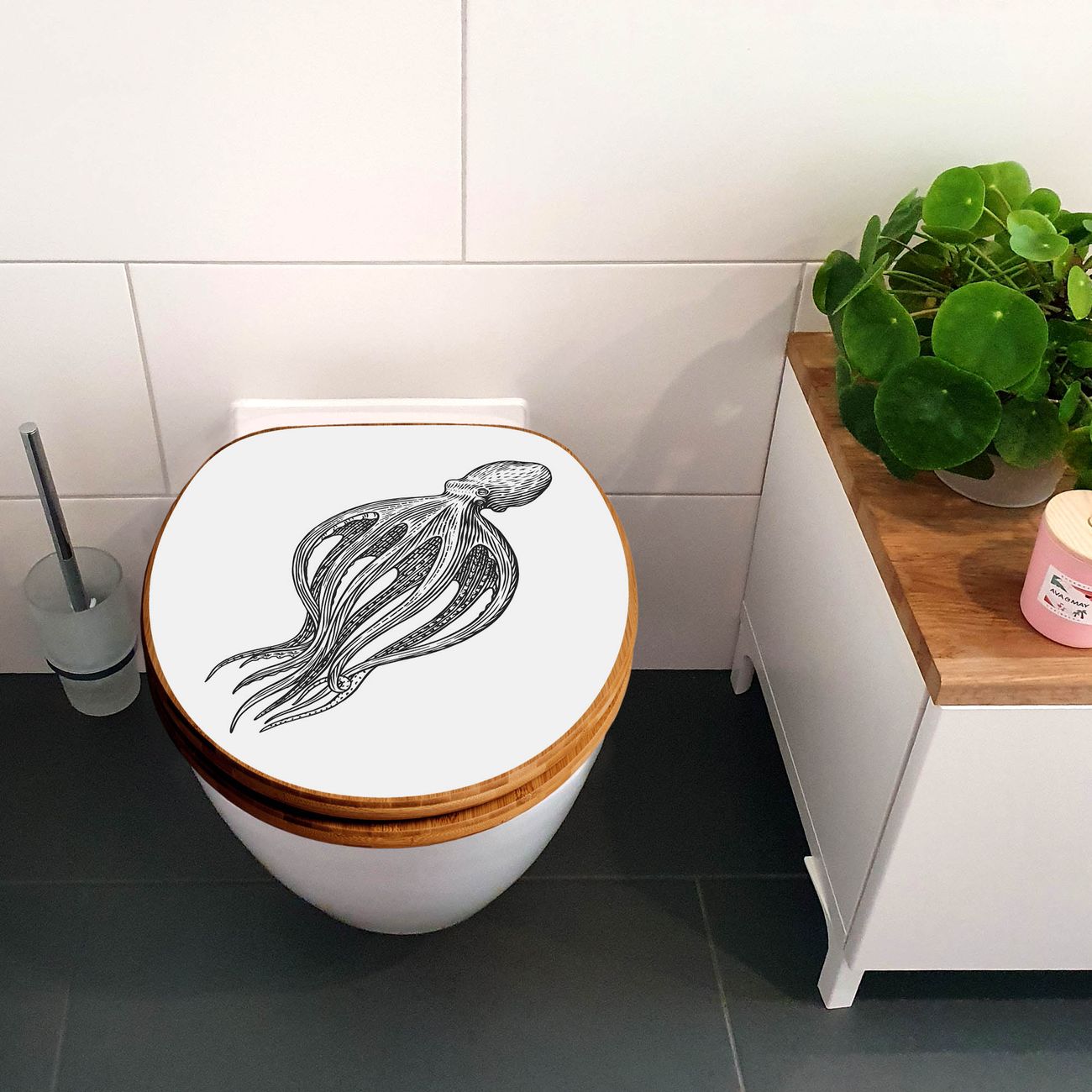 Design WC-Sitz Bambus Absenkautomatik Motiv Oktopus 8