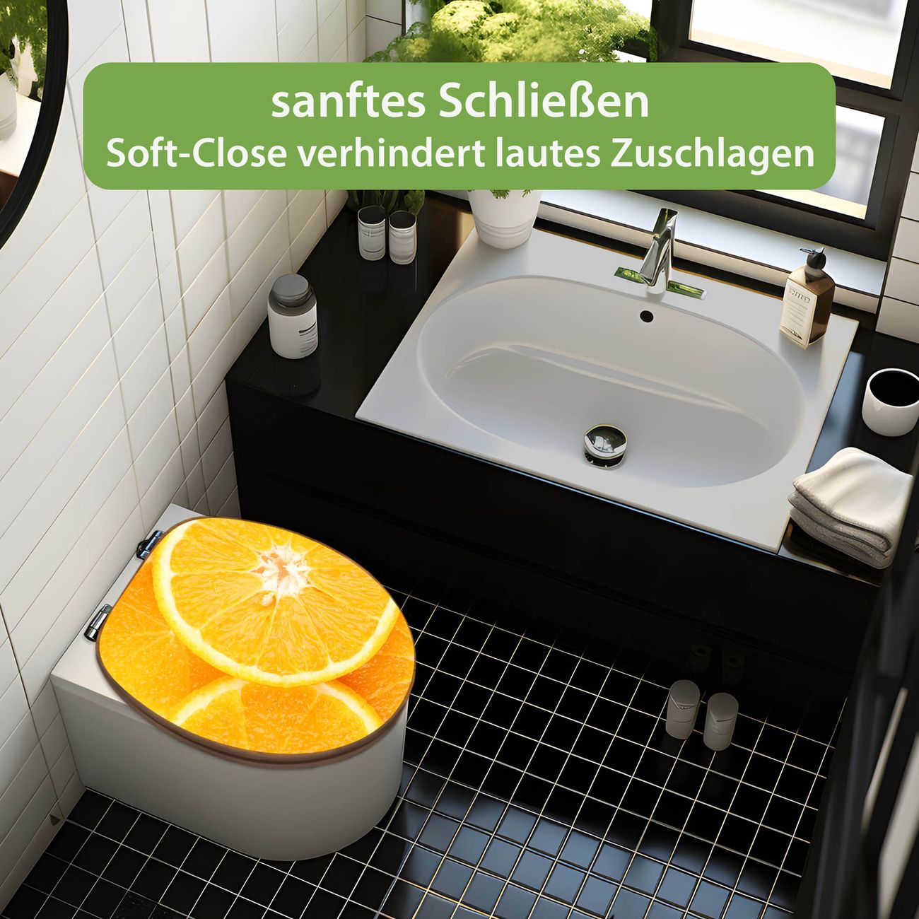 Design WC-Sitz Bambus Absenkautomatik Motiv Orangenscheiben