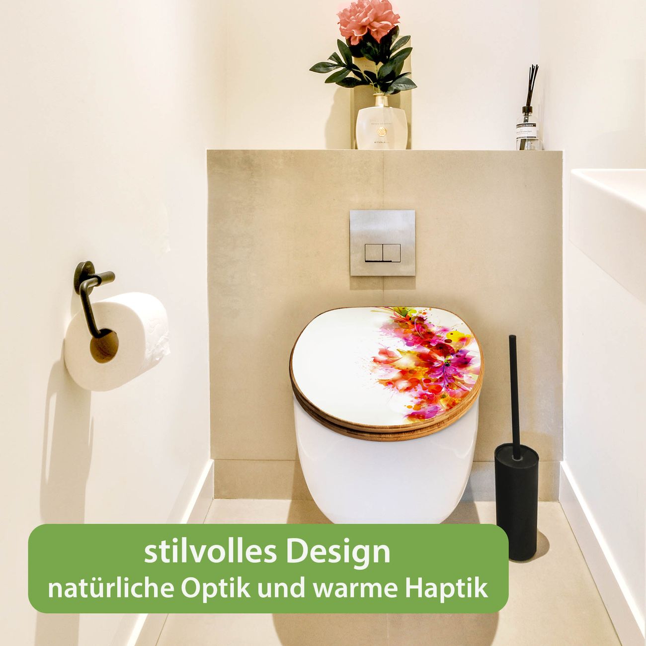 Design WC-Sitz Bambus Absenkautomatik Motiv Pink Explosion