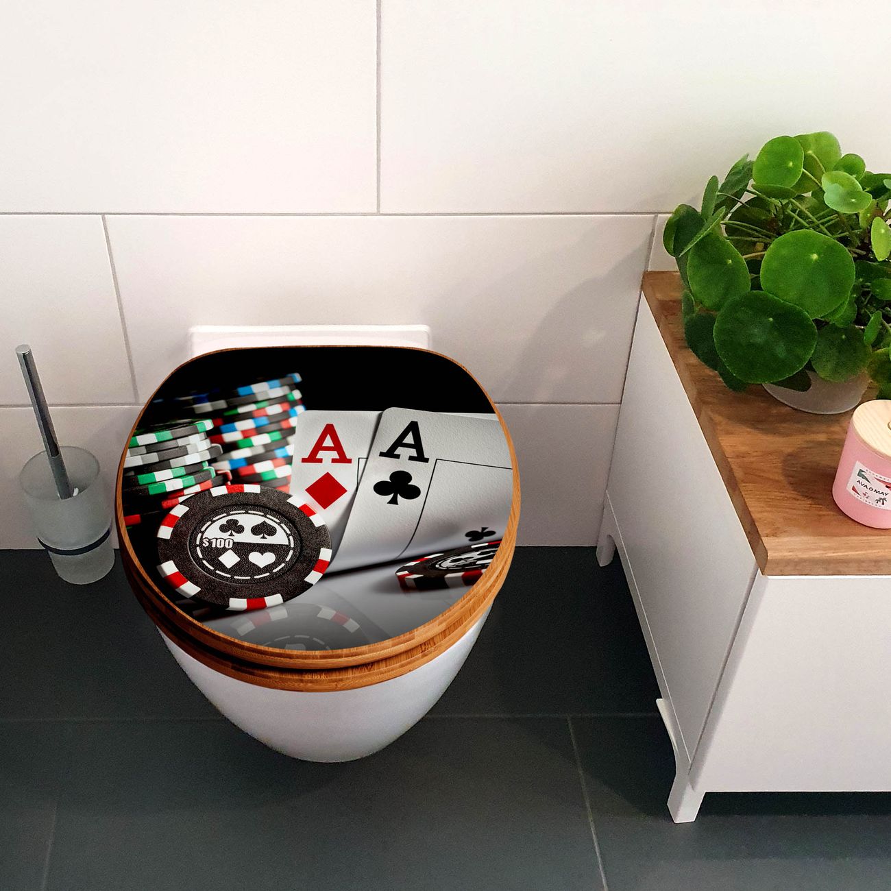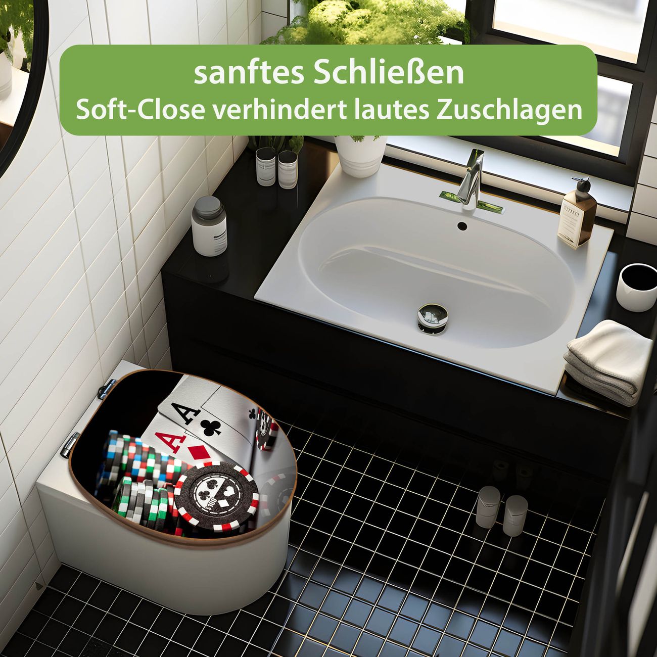 Design WC-Sitz Bambus Absenkautomatik Motiv Poker