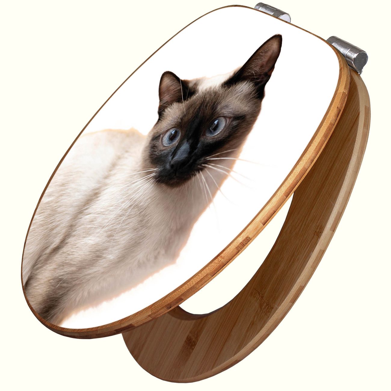 Design WC-Sitz Bambus Absenkautomatik Motiv Porträt einer Siamkatze