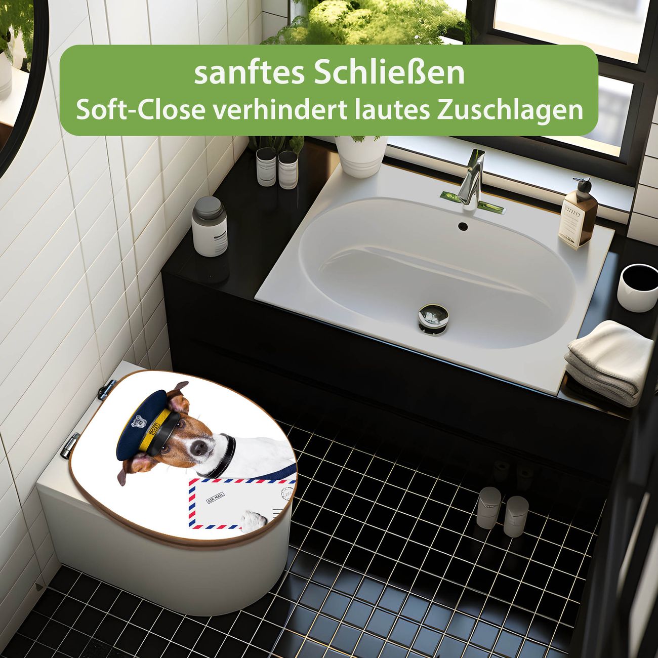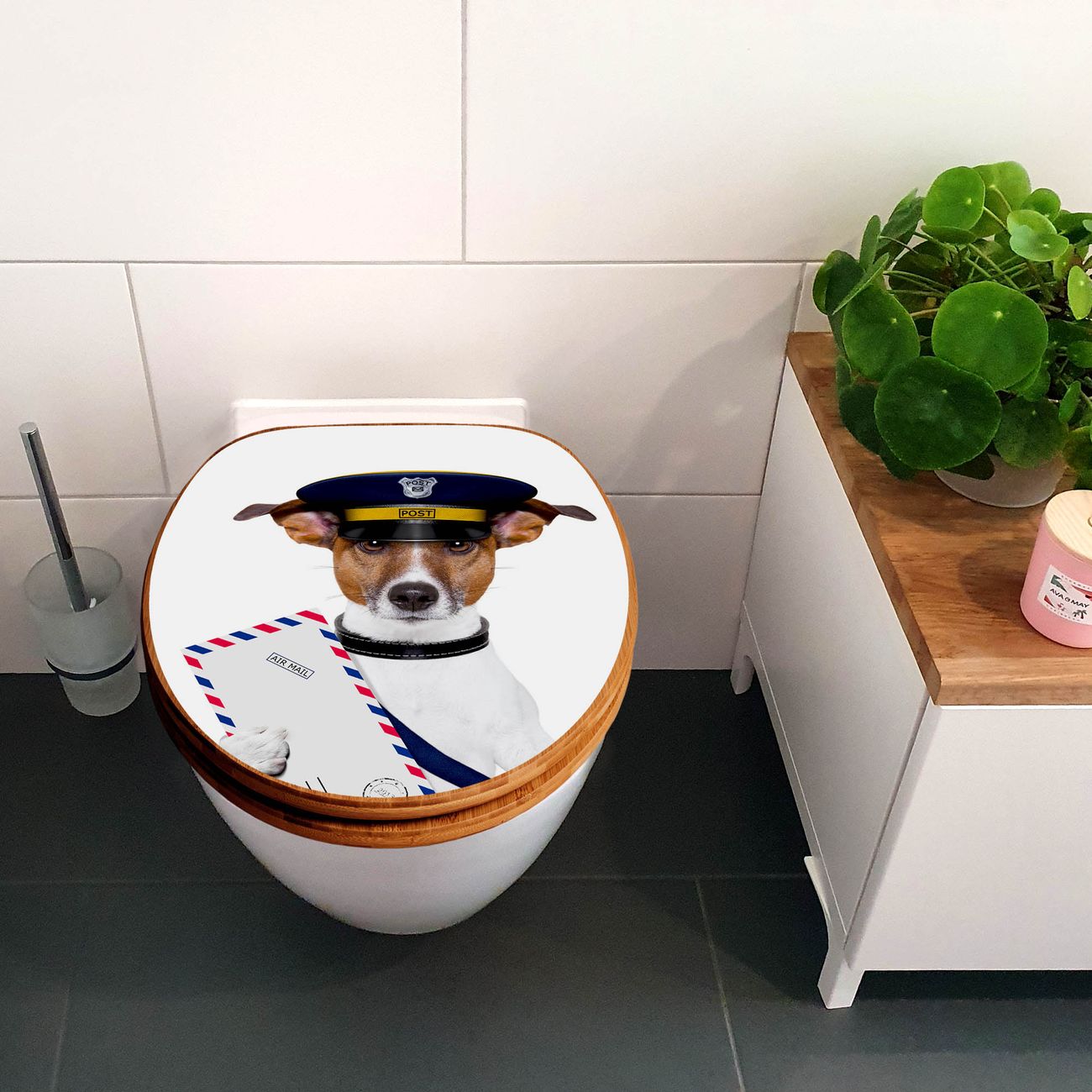 Design WC-Sitz Bambus Absenkautomatik Motiv Postbote Jack Russel