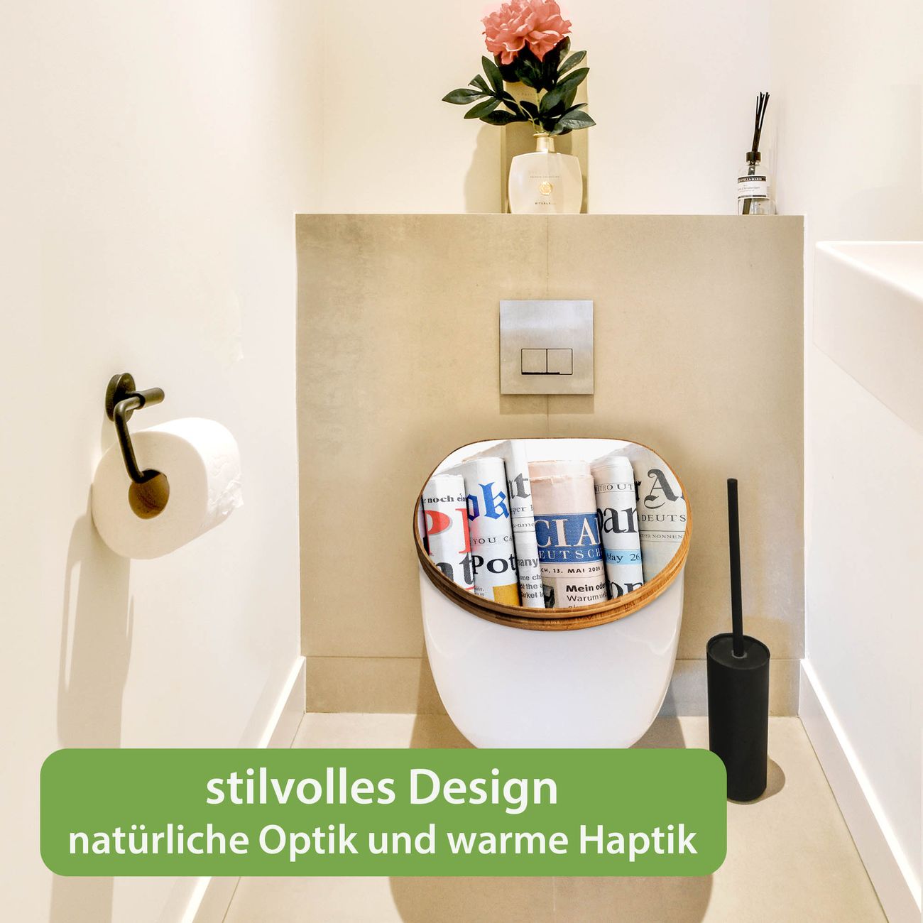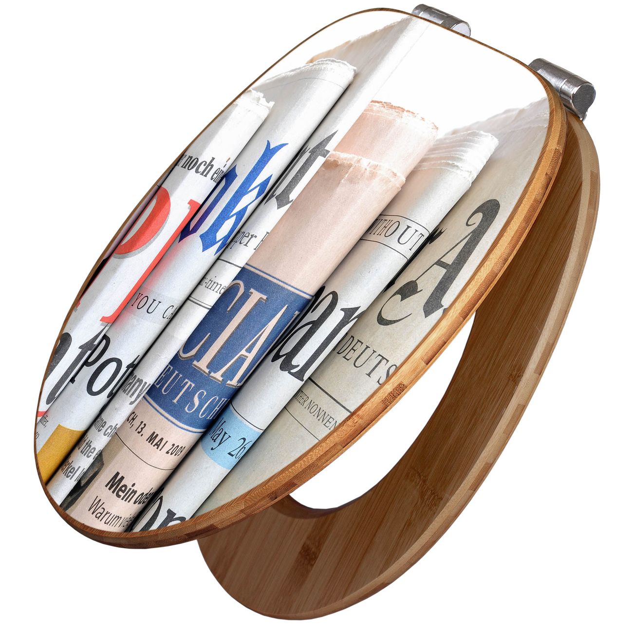 Mit dem banjado Toilettensitz in Bambus verbinden Sie Design und Funktionalität. Sie erhalten den WC-Sitz mit bewährter Holz Qualität und Universal Scharnieren. Das Motiv Motiv Presse besteht aus einer schutzlaminierten Motivfolie, die durch das Schutzlaminat zusätzlich vor Kratzern schützt. Durch diesen Motivdruck wird der WC-Sitz zu einem Blickfang in Ihrem Bad.