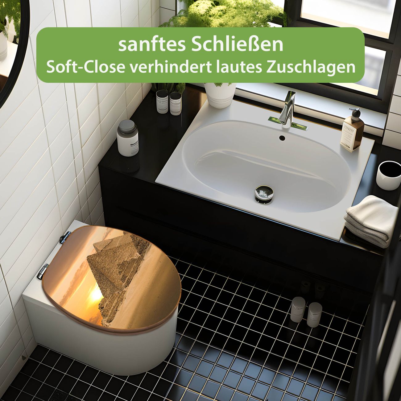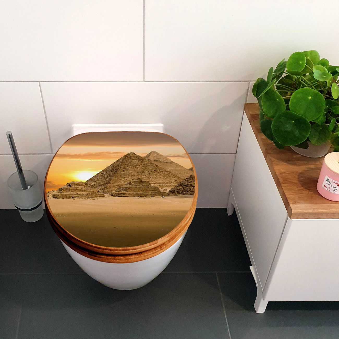 Design WC-Sitz Bambus Absenkautomatik Motiv Pyramiden