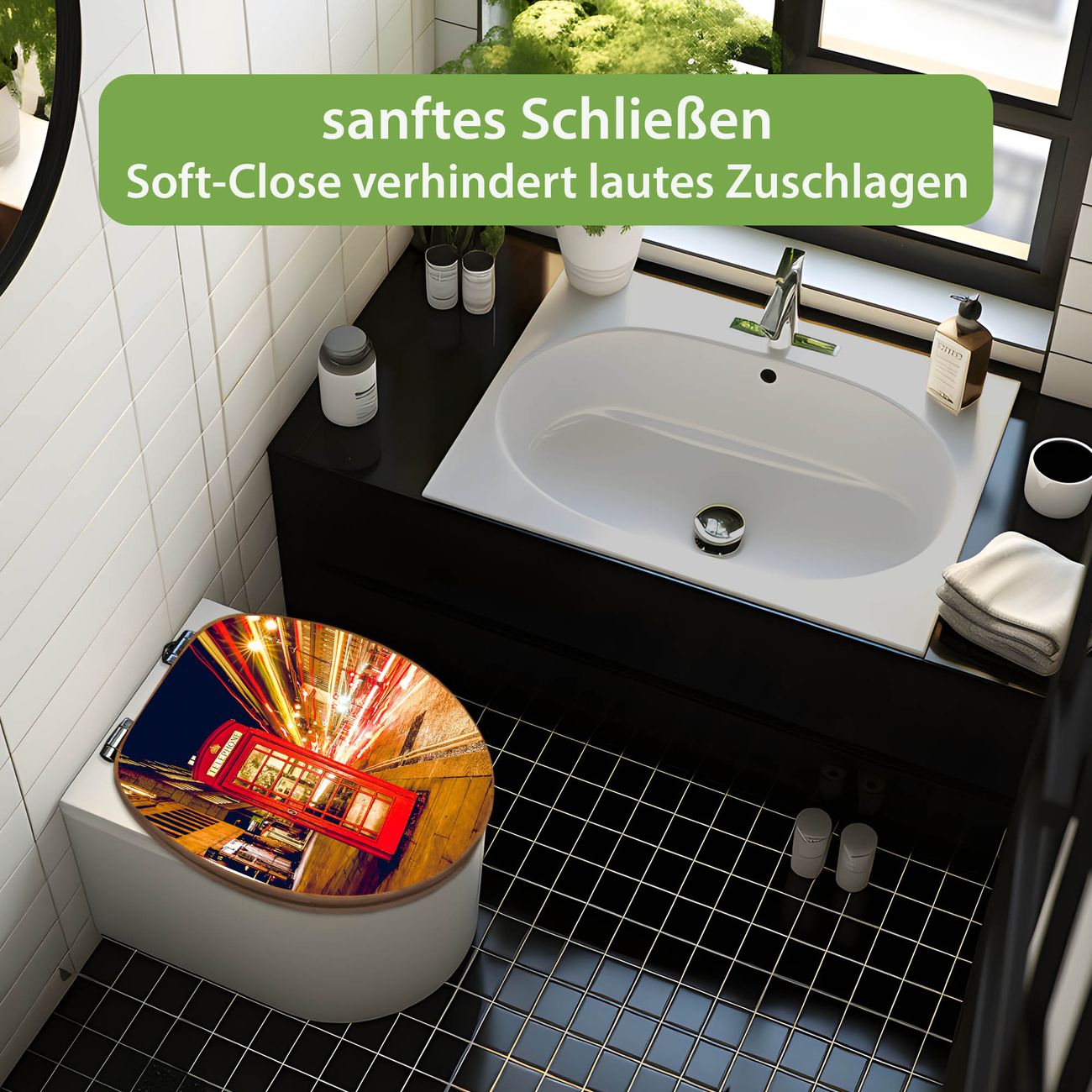 Design WC-Sitz Bambus Absenkautomatik Motiv Red Telephone Trafic