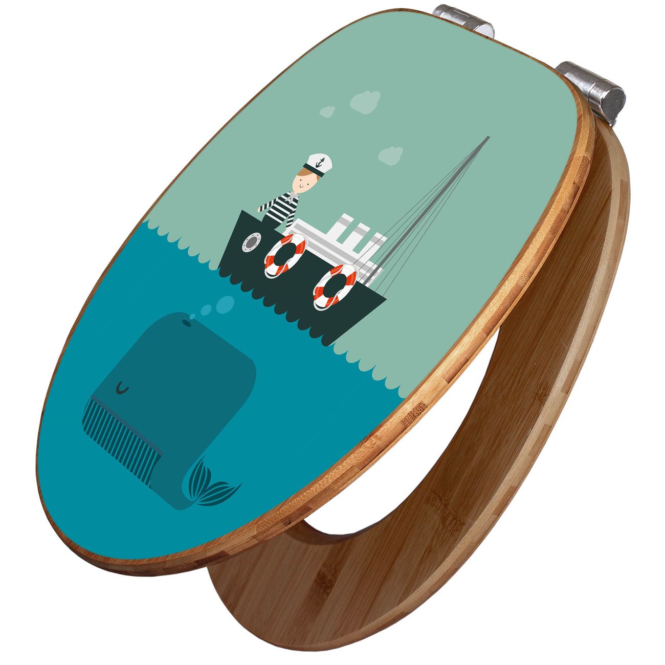 Design WC-Sitz Bambus Absenkautomatik Motiv Rettet die Wale