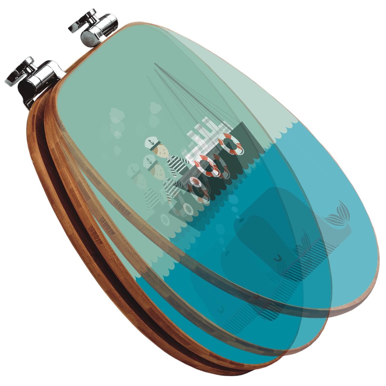 Mit dem banjado Toilettensitz in Bambus verbinden Sie Design und Funktionalität. Sie erhalten den WC-Sitz mit bewährter Holz Qualität und Universal Scharnieren. Das Motiv Motiv Rettet die Wale besteht aus einer schutzlaminierten Motivfolie, die durch das Schutzlaminat zusätzlich vor Kratzern schützt. Durch diesen Motivdruck wird der WC-Sitz zu einem Blickfang in Ihrem Bad.