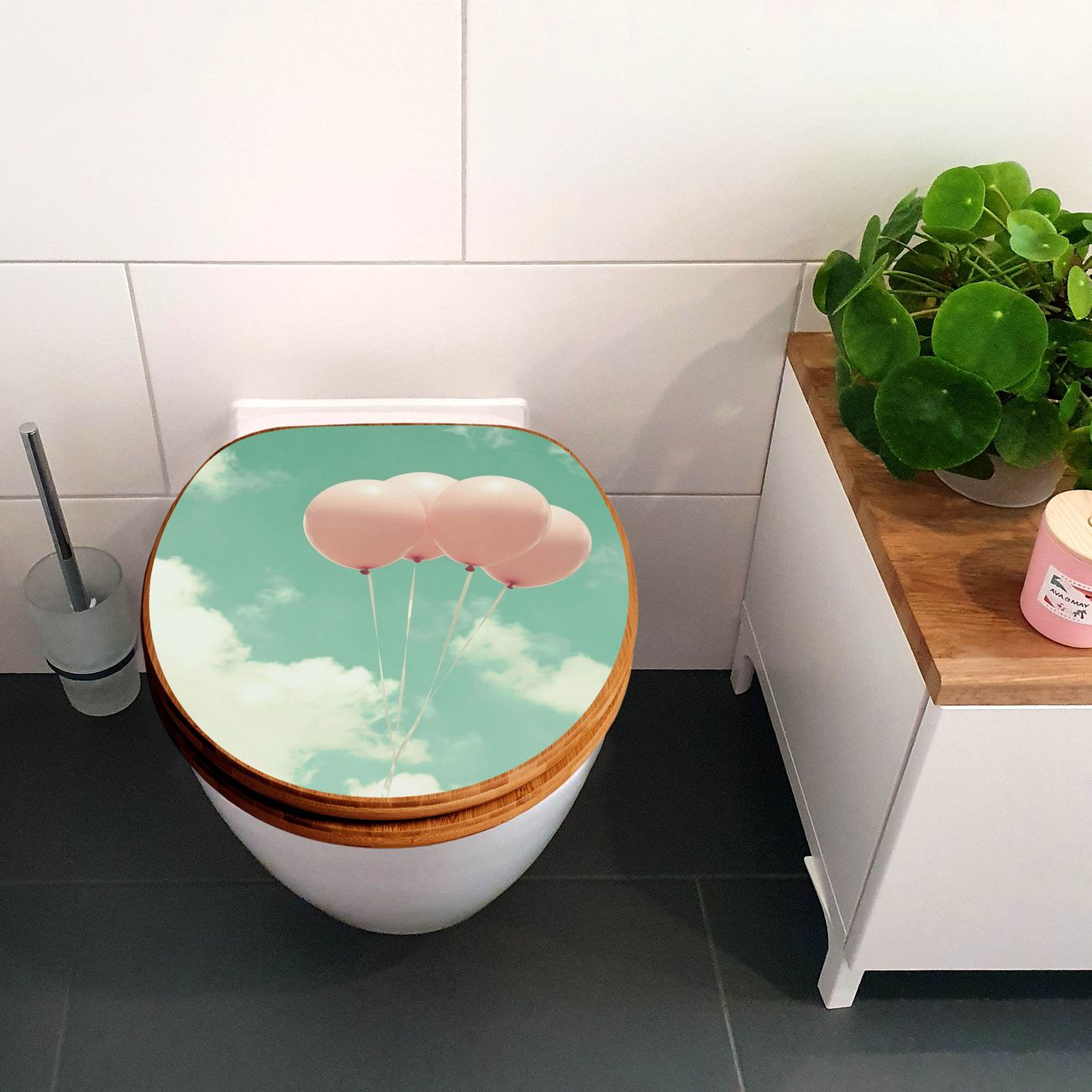 Design WC-Sitz Bambus Absenkautomatik Motiv Rosa Ballons