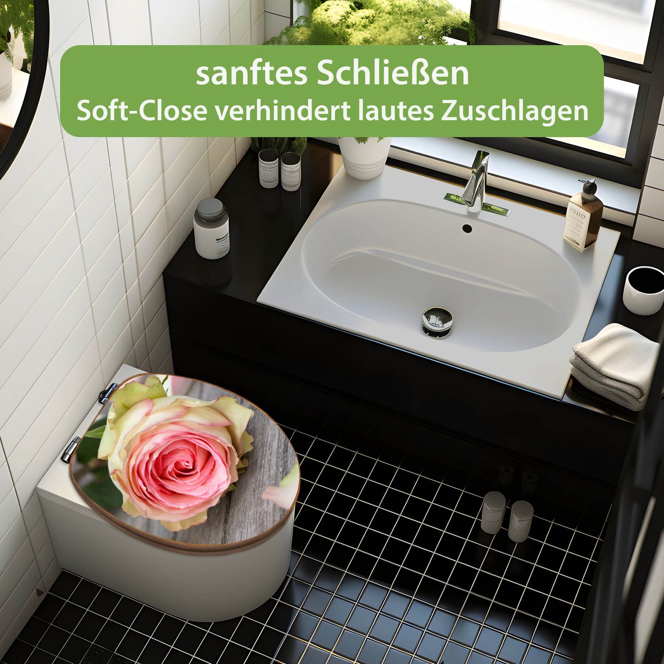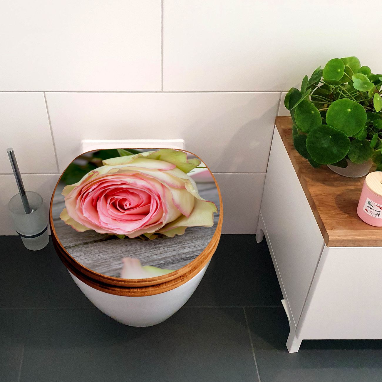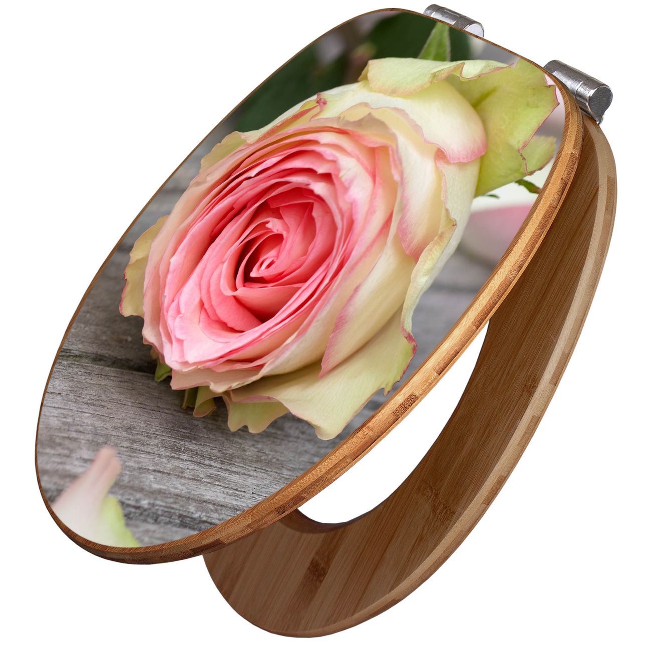 Design WC-Sitz Bambus Absenkautomatik Motiv Rosa Rose