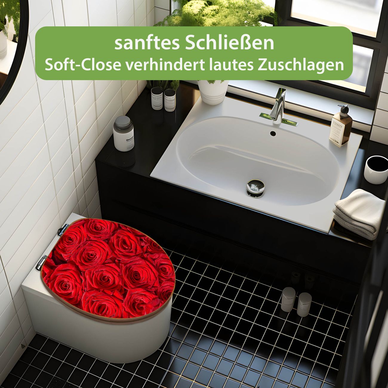 Design WC-Sitz Bambus Absenkautomatik Motiv Rosenbett