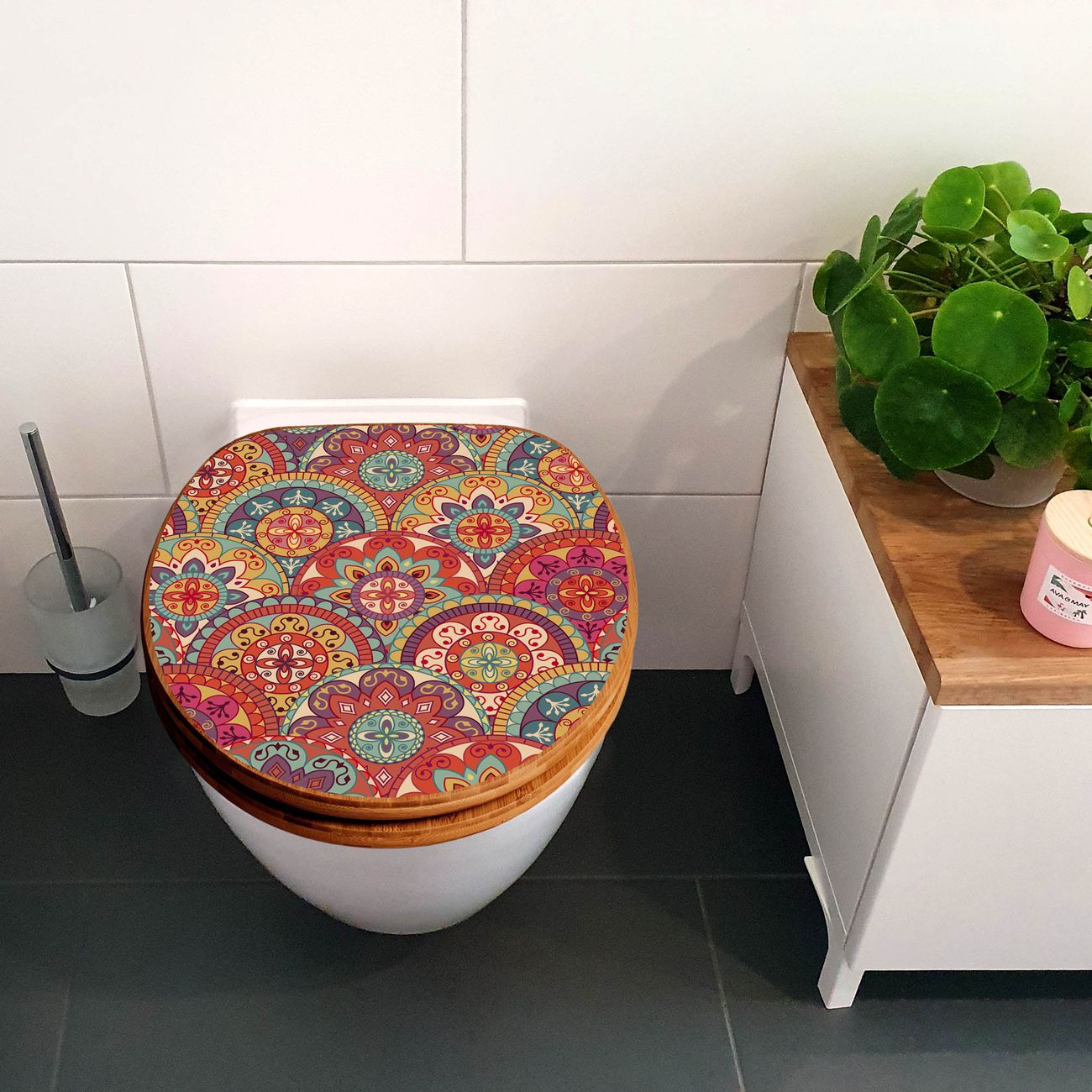 Mit dem banjado Toilettensitz in Bambus verbinden Sie Design und Funktionalität. Sie erhalten den WC-Sitz mit bewährter Holz Qualität und Universal Scharnieren. Das Motiv Motiv Rosetten besteht aus einer schutzlaminierten Motivfolie, die durch das Schutzlaminat zusätzlich vor Kratzern schützt. Durch diesen Motivdruck wird der WC-Sitz zu einem Blickfang in Ihrem Bad.