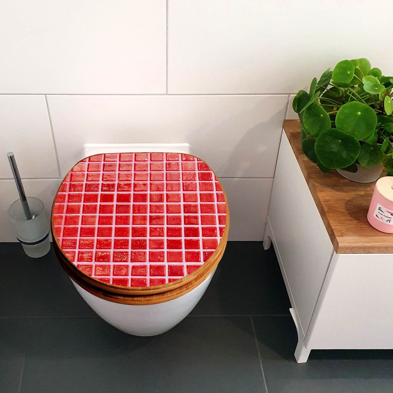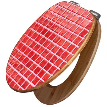 Design WC-Sitz Bambus Absenkautomatik Motiv Rote Kacheln