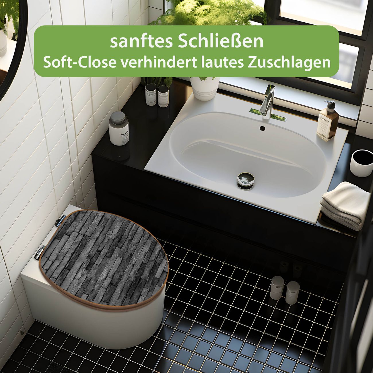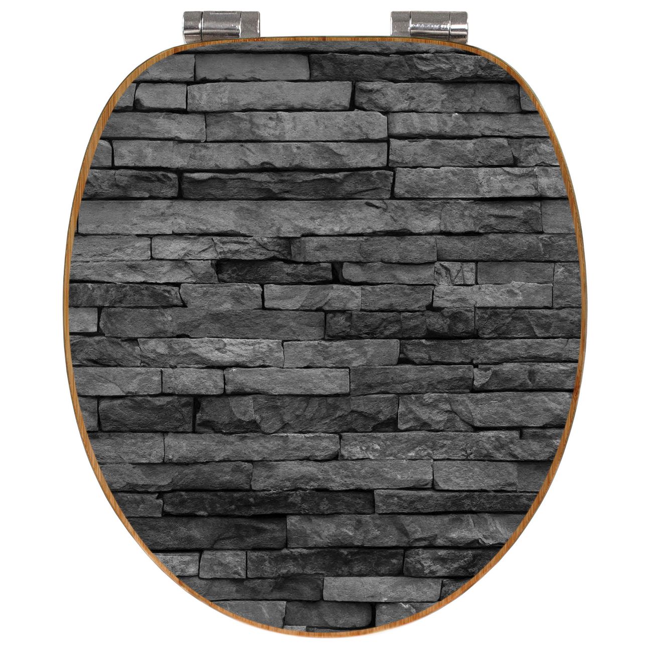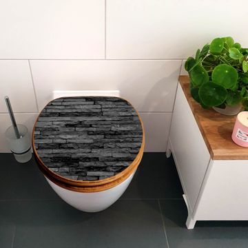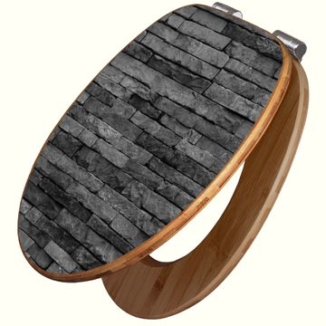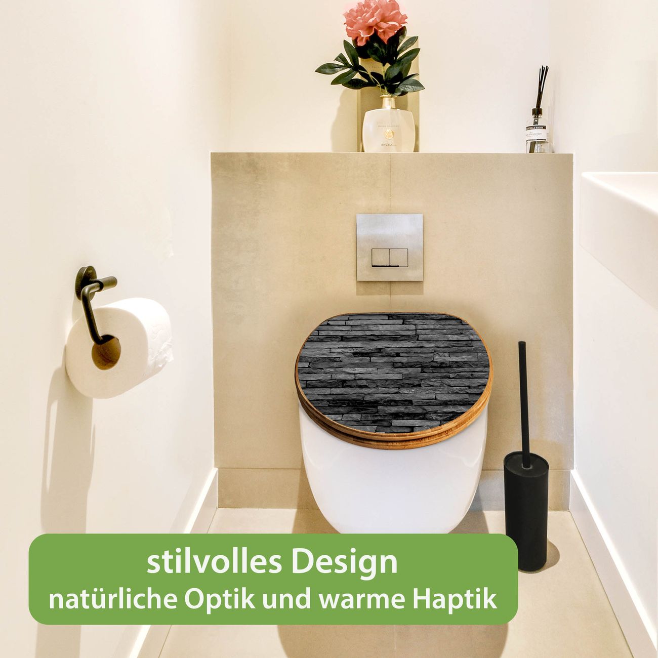 Design WC-Sitz Bambus Absenkautomatik Motiv Rustikale Steinwand