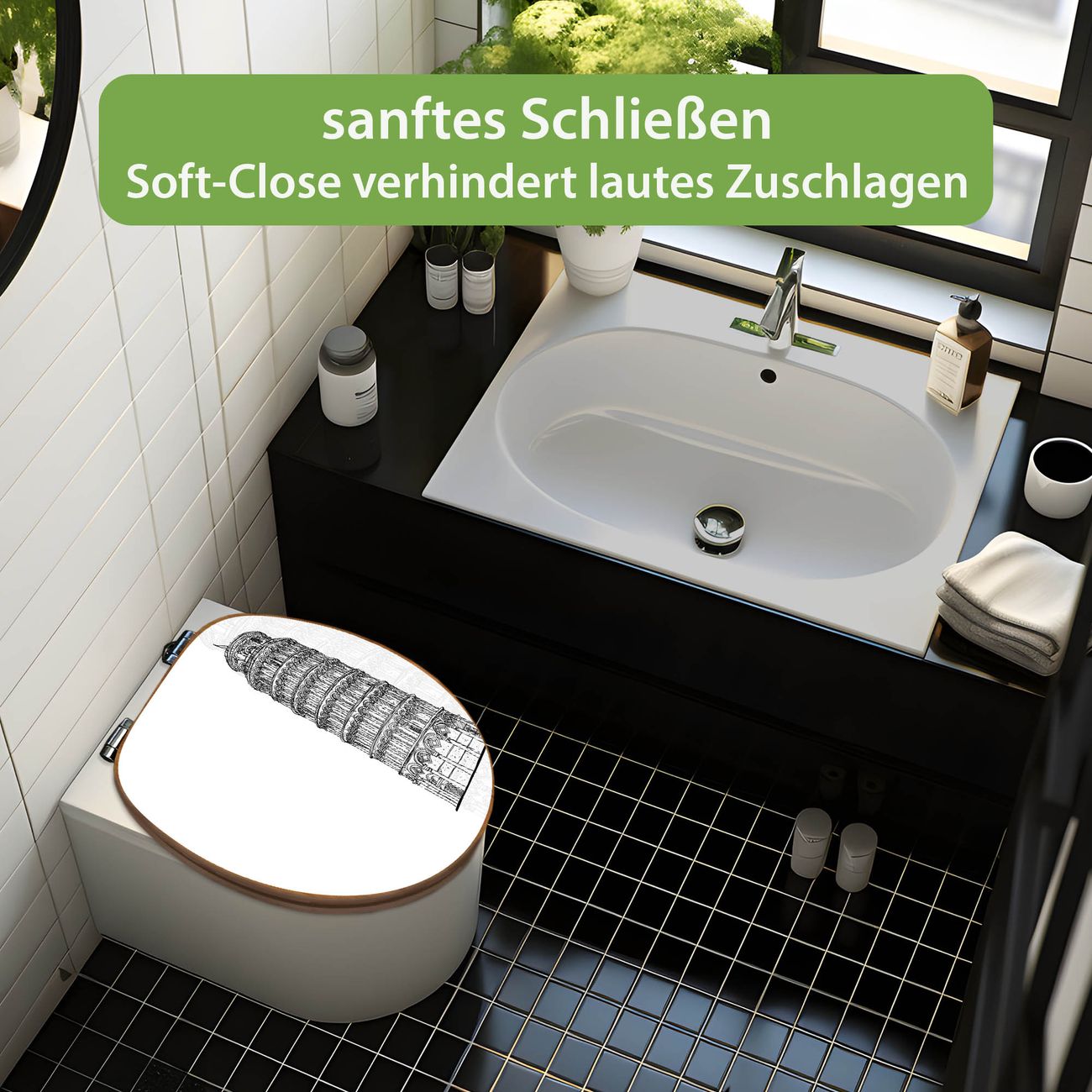 Design WC-Sitz Bambus Absenkautomatik Motiv Schiefer Turm von Pisa Skizze