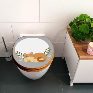 Design WC-Sitz Bambus Absenkautomatik Motiv Schlafende Katze im Garten