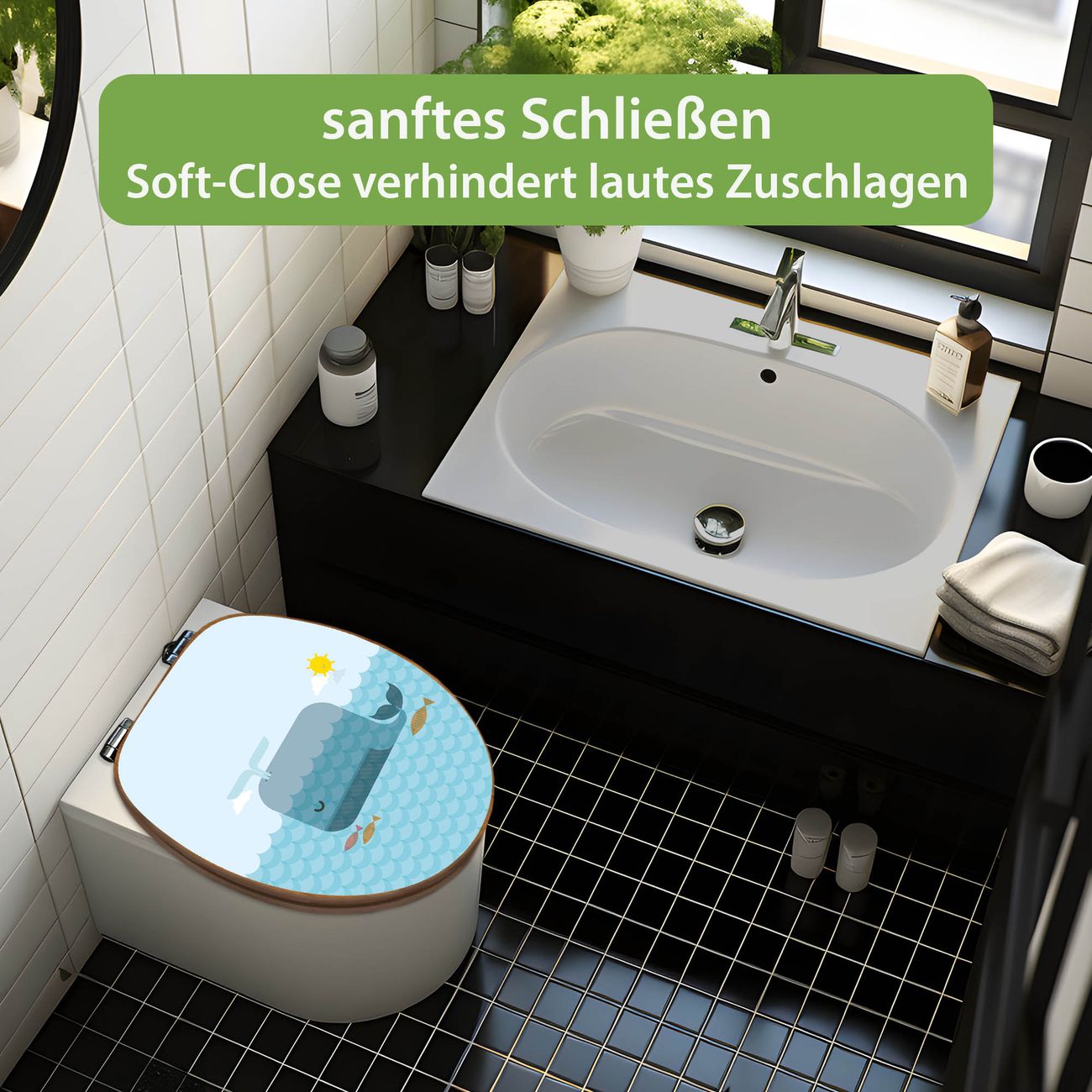 Design WC-Sitz Bambus Absenkautomatik Motiv Schlafender Wal