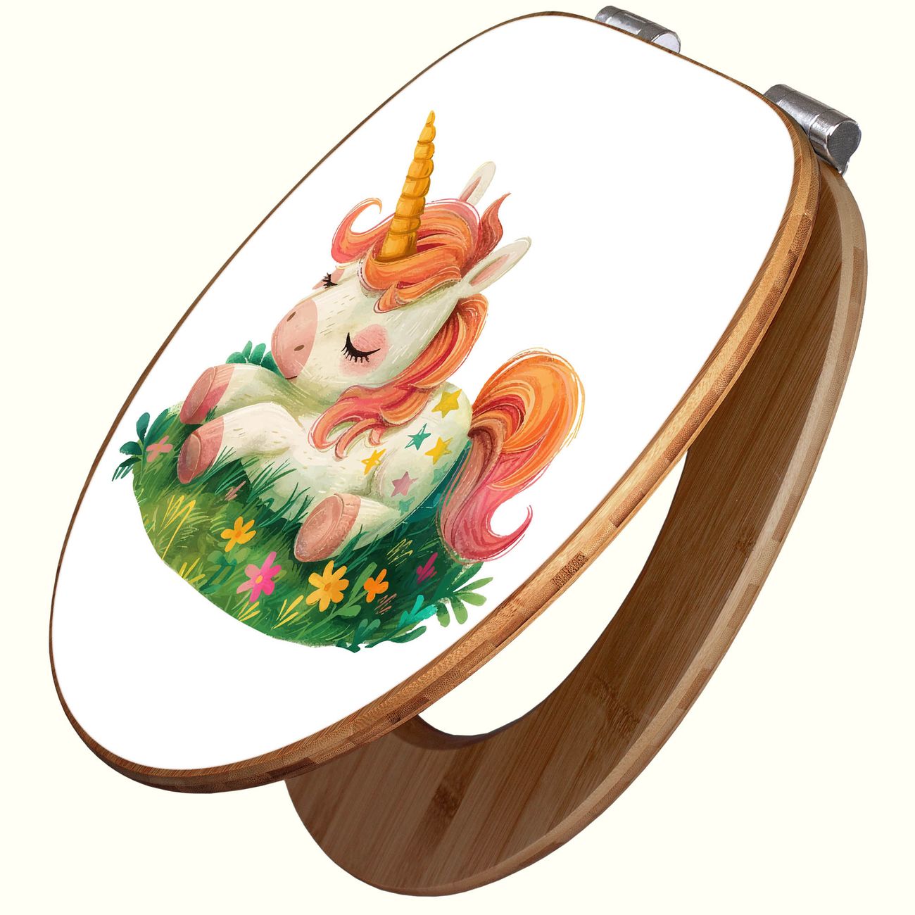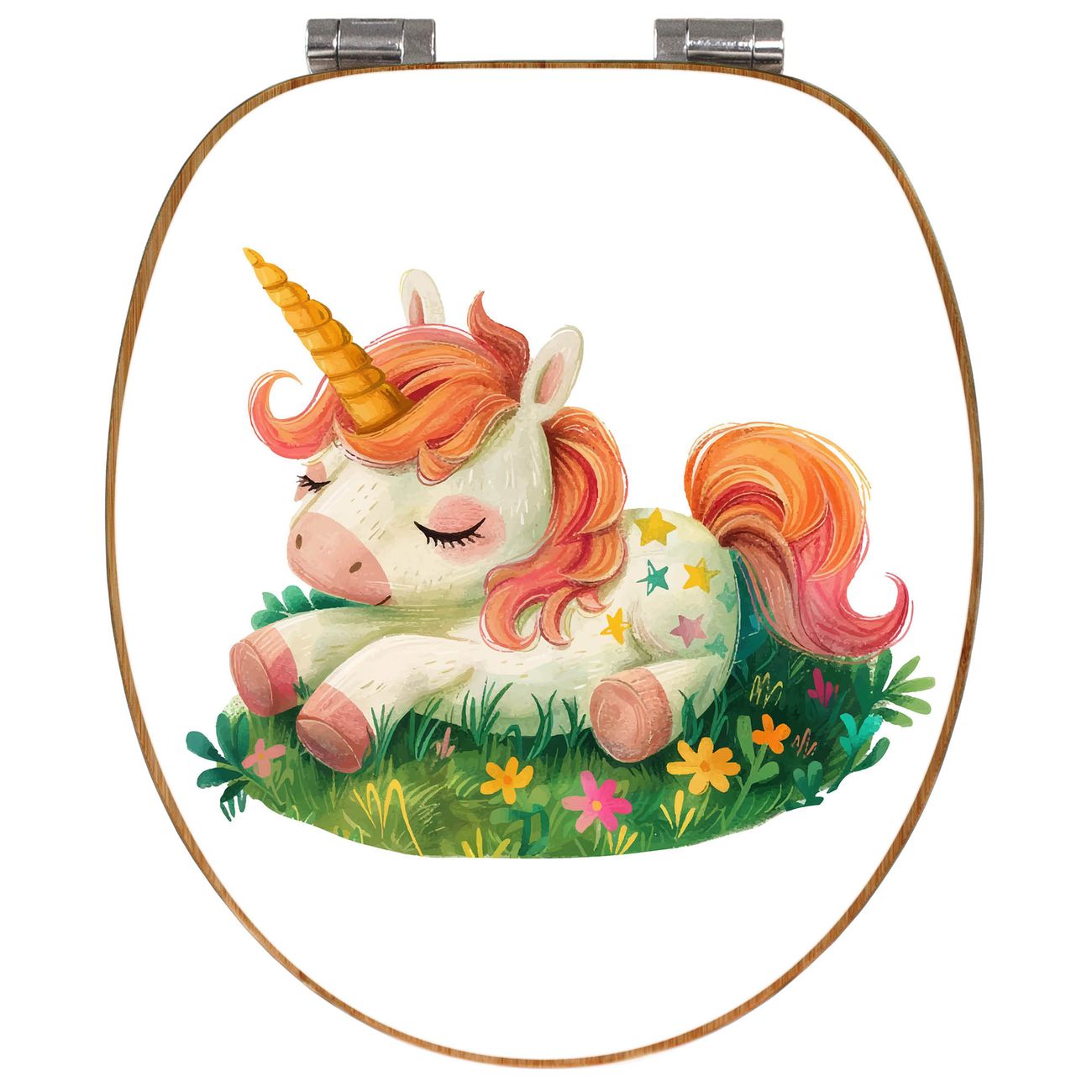 Design WC-Sitz Bambus Absenkautomatik Motiv Schlafendes Einhorn