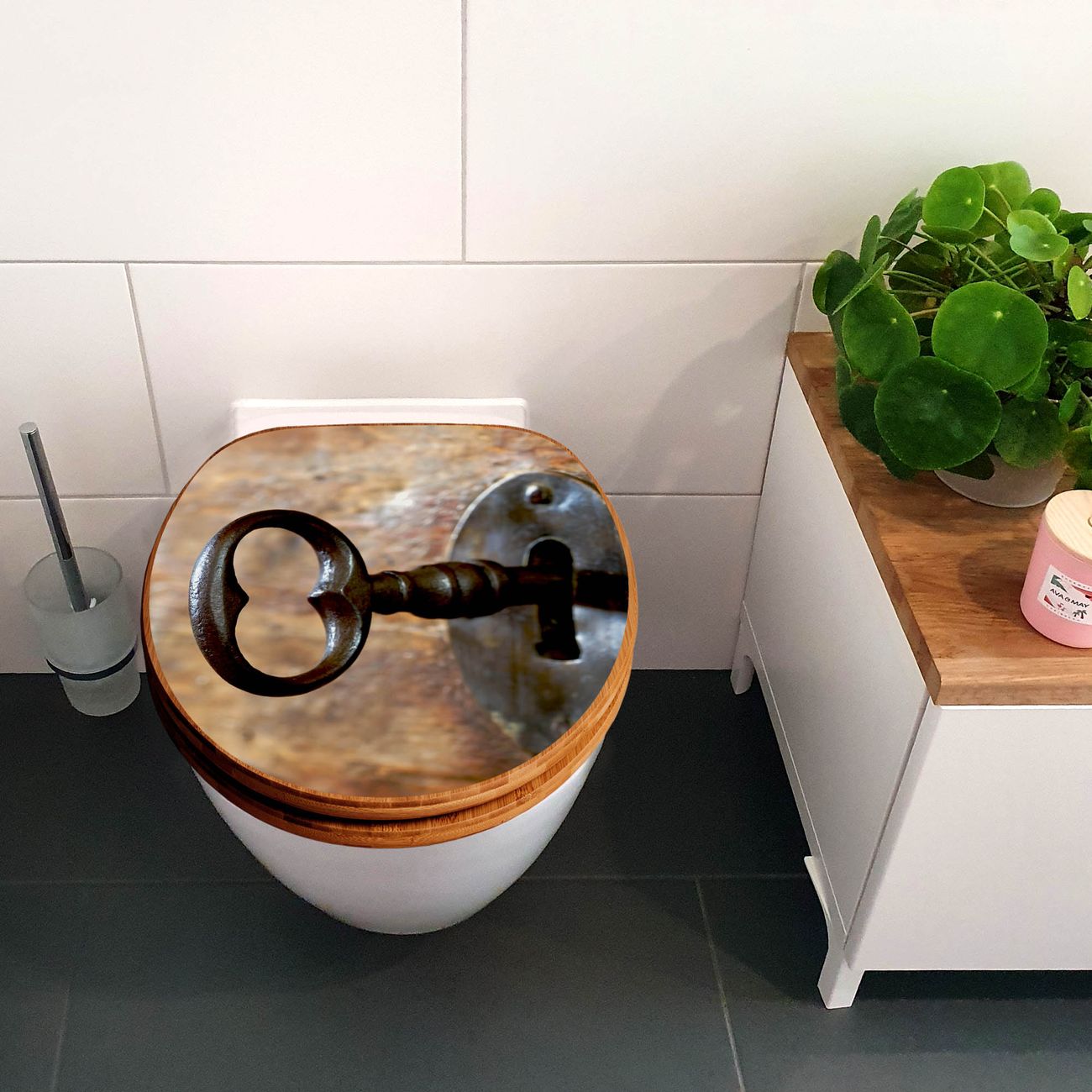 Design WC-Sitz Bambus Absenkautomatik Motiv Schlüssel