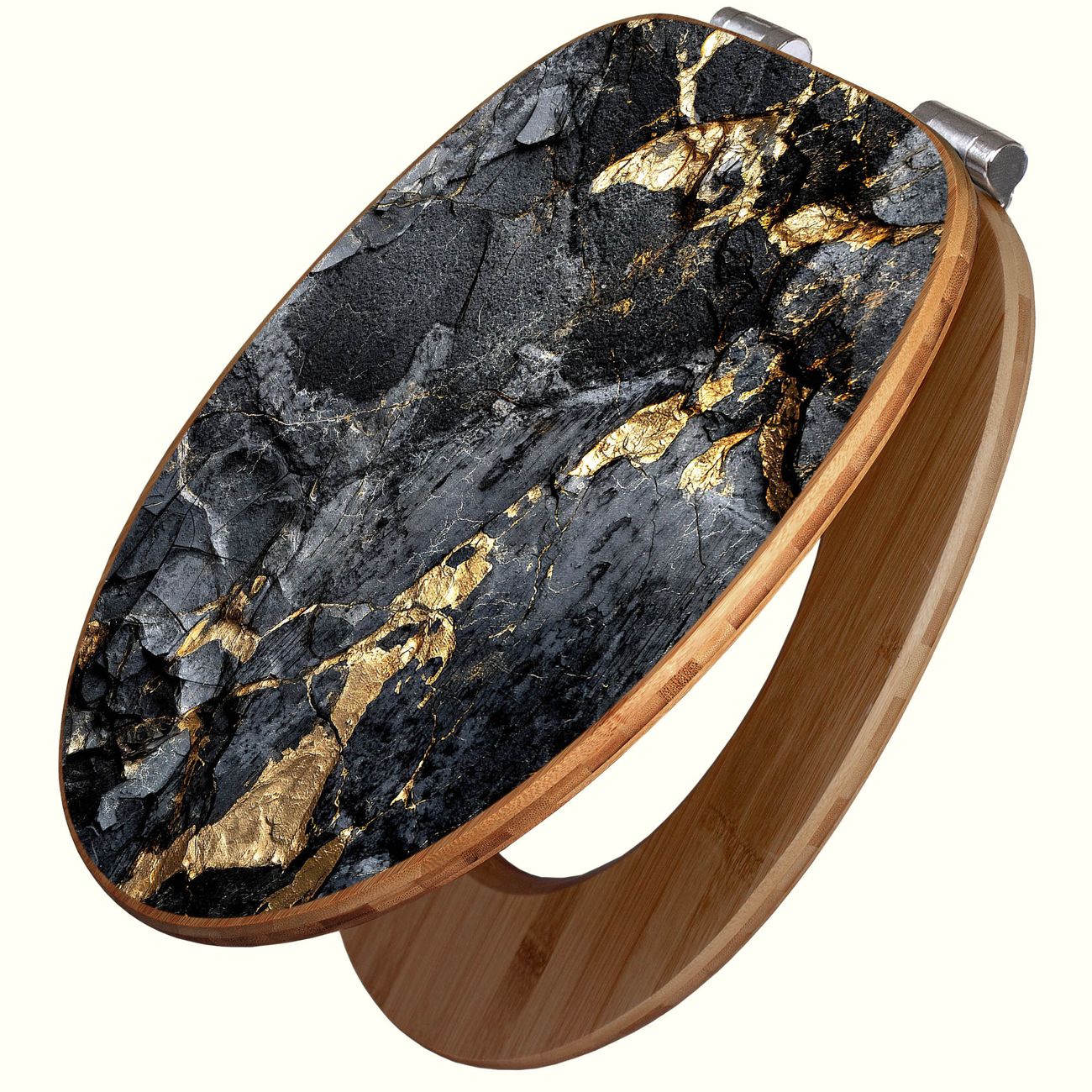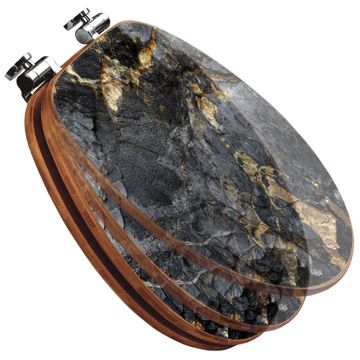 Design WC-Sitz Bambus Absenkautomatik Motiv Schwarzer Marmor mit Gold 1