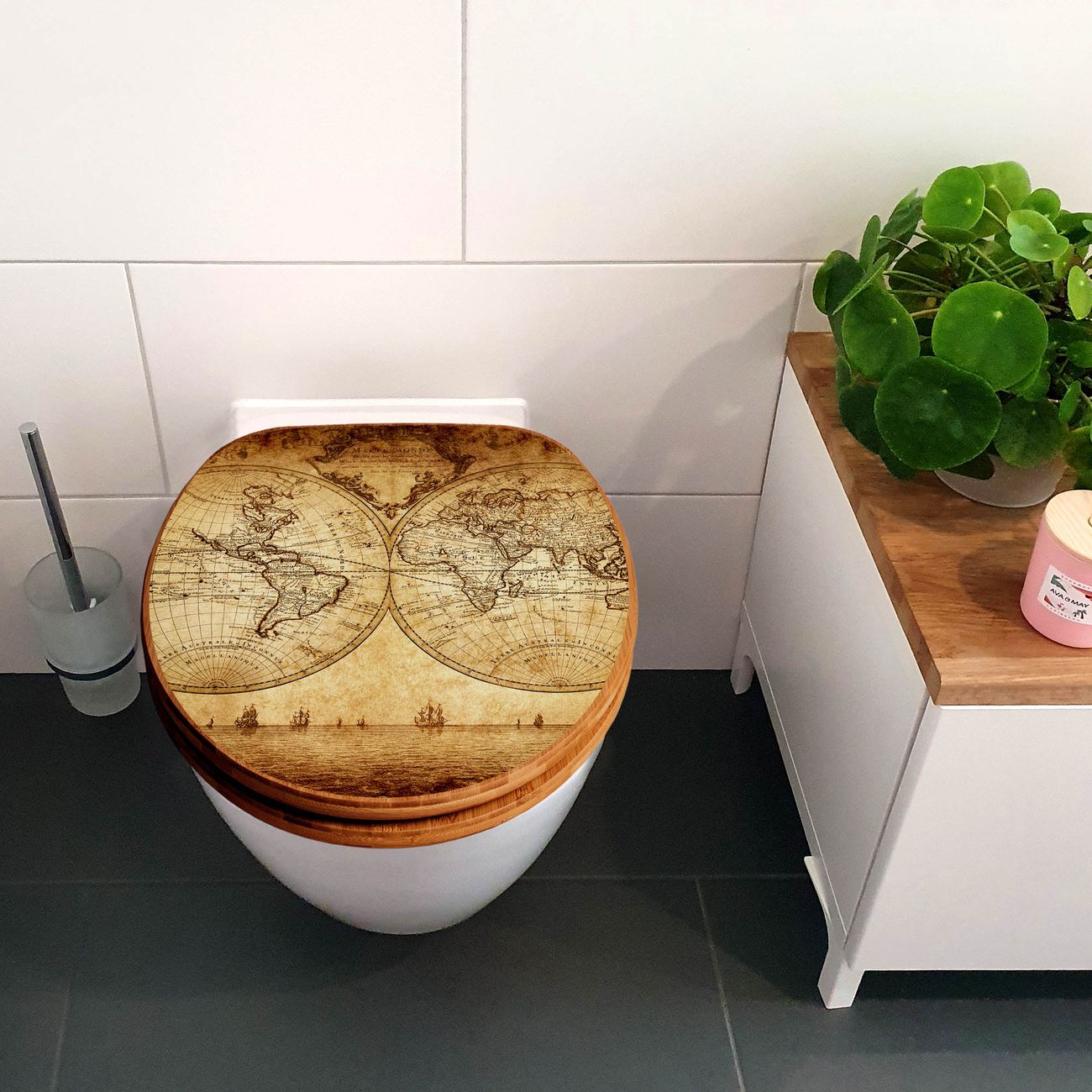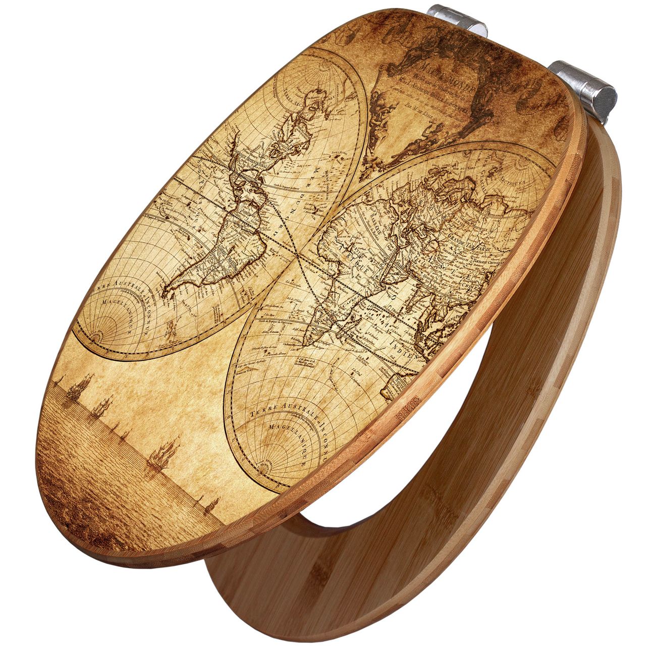 Design WC-Sitz Bambus Absenkautomatik Motiv Sieben Weltmeere
