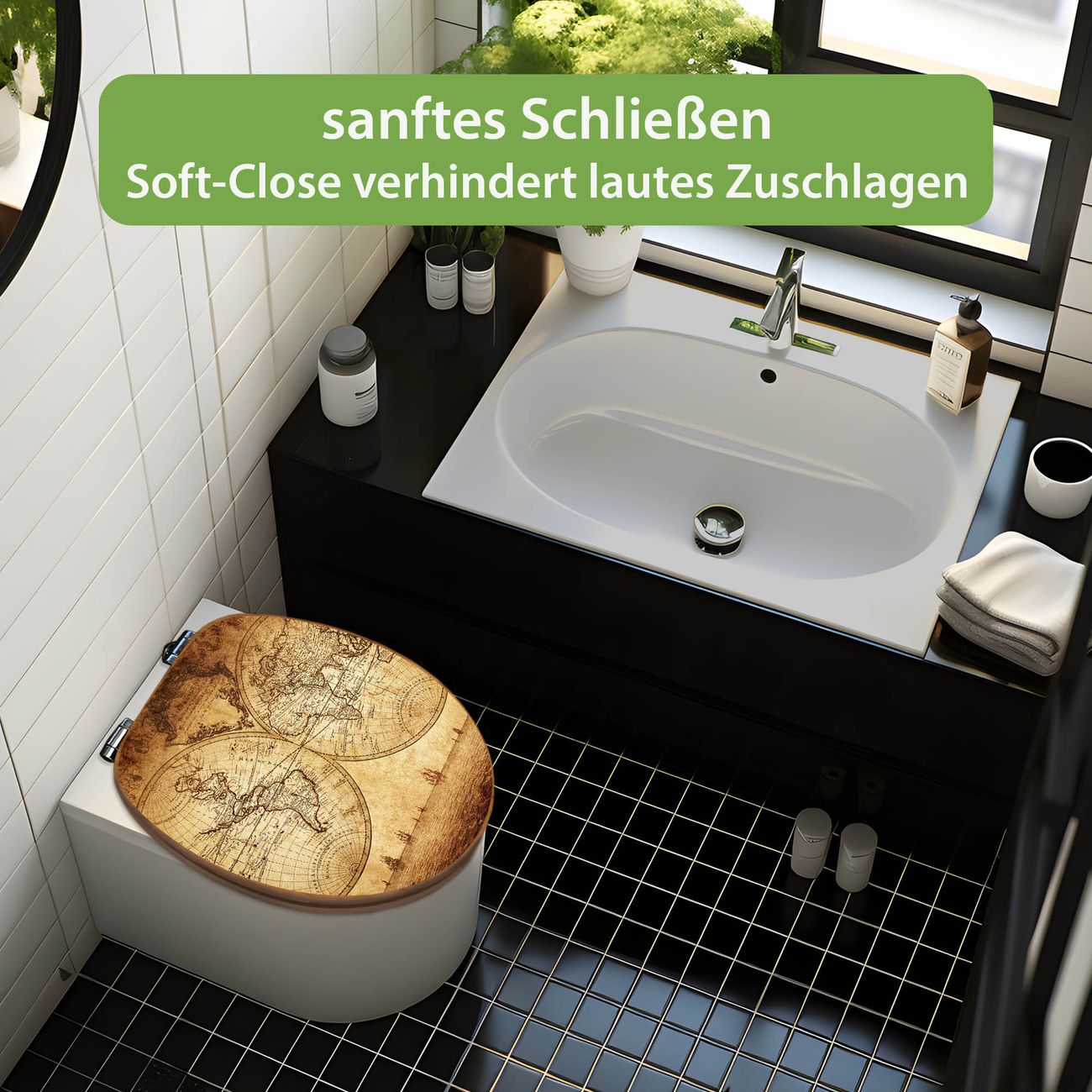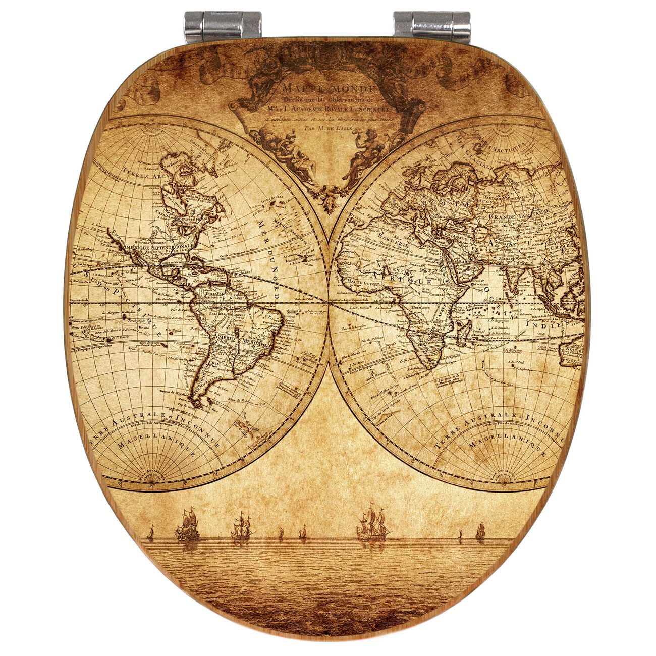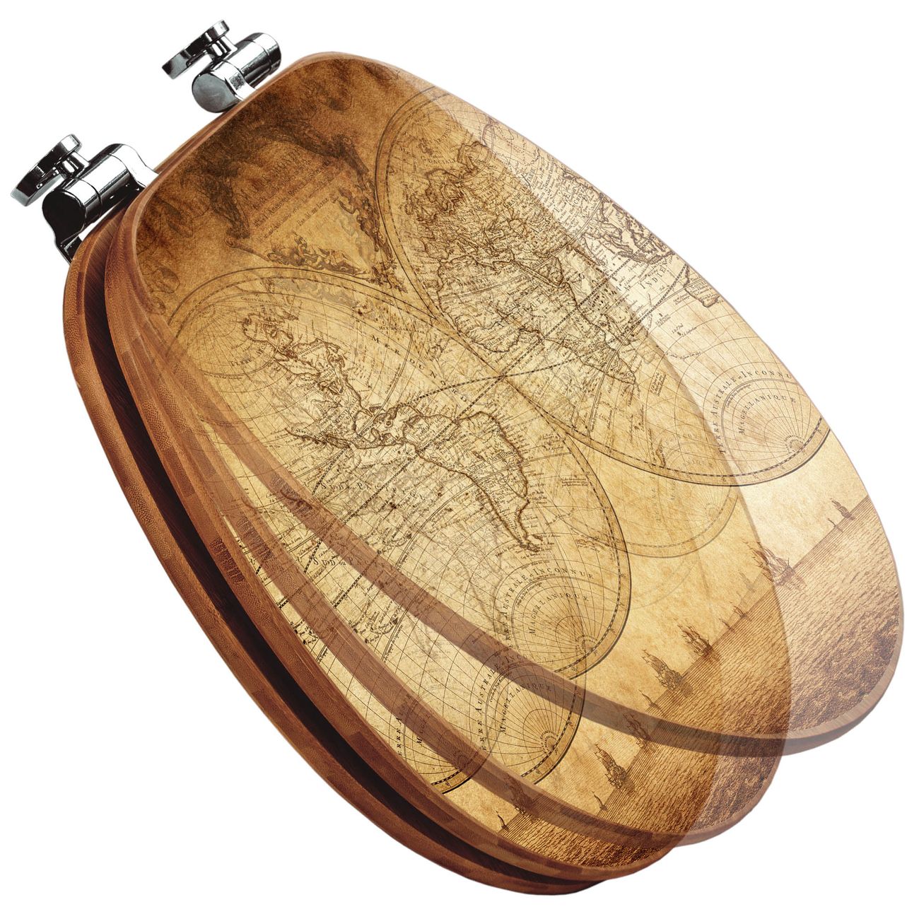 Mit dem banjado Toilettensitz in Bambus verbinden Sie Design und Funktionalität. Sie erhalten den WC-Sitz mit bewährter Holz Qualität und Universal Scharnieren. Das Motiv Motiv Sieben Weltmeere besteht aus einer schutzlaminierten Motivfolie, die durch das Schutzlaminat zusätzlich vor Kratzern schützt. Durch diesen Motivdruck wird der WC-Sitz zu einem Blickfang in Ihrem Bad.