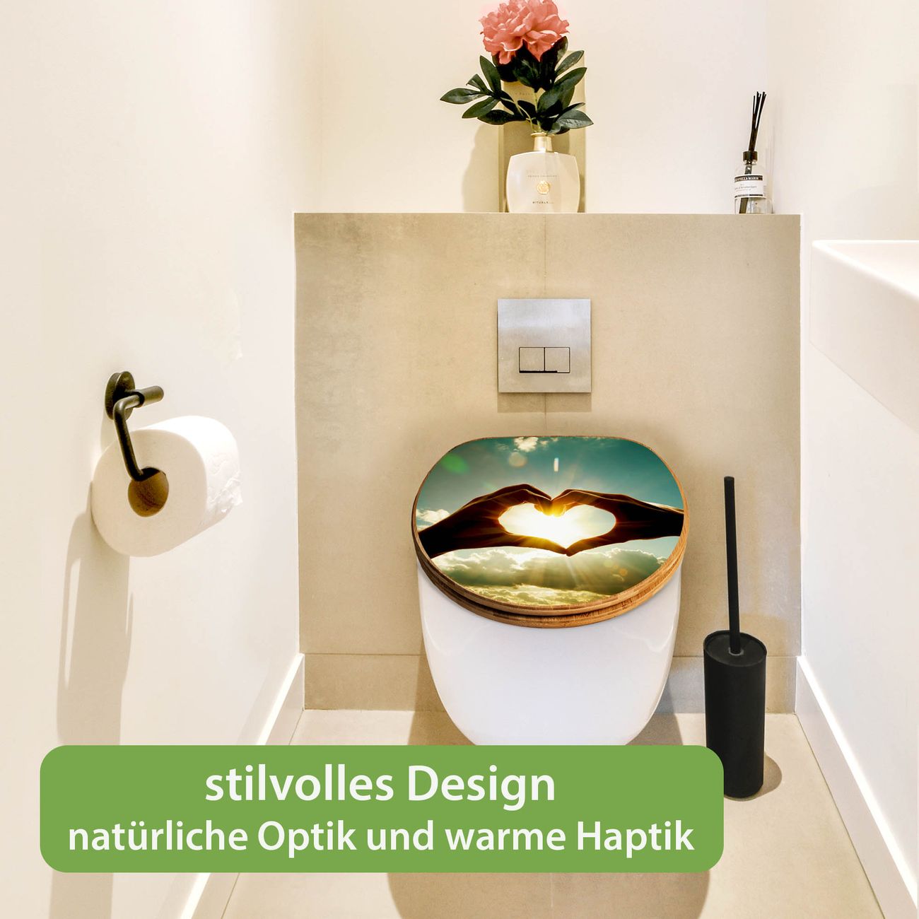 Design WC-Sitz Bambus Absenkautomatik Motiv Sonne im Herzen