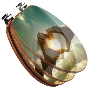 Mit dem banjado Toilettensitz in Bambus verbinden Sie Design und Funktionalität. Sie erhalten den WC-Sitz mit bewährter Holz Qualität und Universal Scharnieren. Das Motiv Motiv Sonne im Herzen besteht aus einer schutzlaminierten Motivfolie, die durch das Schutzlaminat zusätzlich vor Kratzern schützt. Durch diesen Motivdruck wird der WC-Sitz zu einem Blickfang in Ihrem Bad.