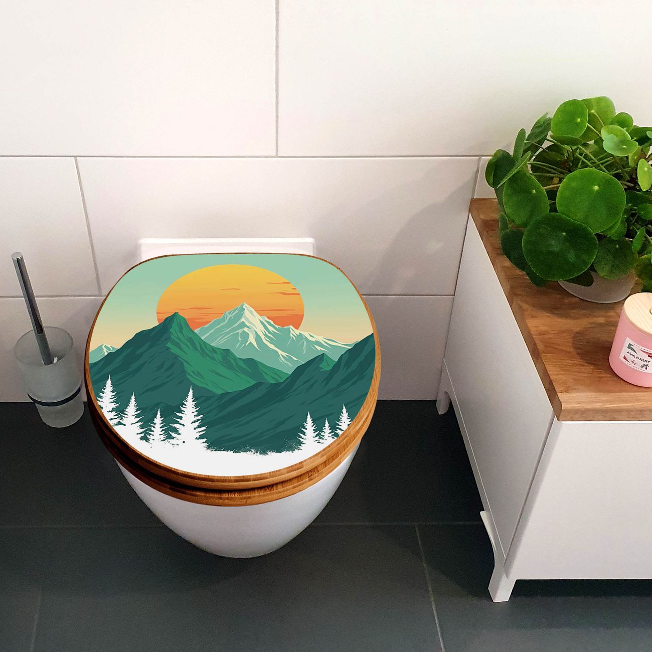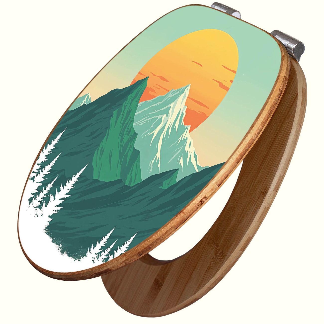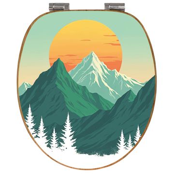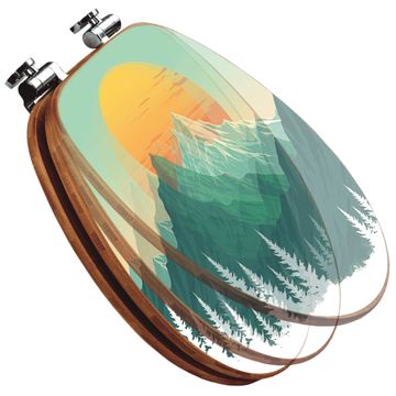 Mit dem banjado Toilettensitz in Bambus verbinden Sie Design und Funktionalität. Sie erhalten den WC-Sitz mit bewährter Holz Qualität und Universal Scharnieren. Das Motiv Motiv Sonnenaufgang über den Bergen besteht aus einer schutzlaminierten Motivfolie, die durch das Schutzlaminat zusätzlich vor Kratzern schützt. Durch diesen Motivdruck wird der WC-Sitz zu einem Blickfang in Ihrem Bad.