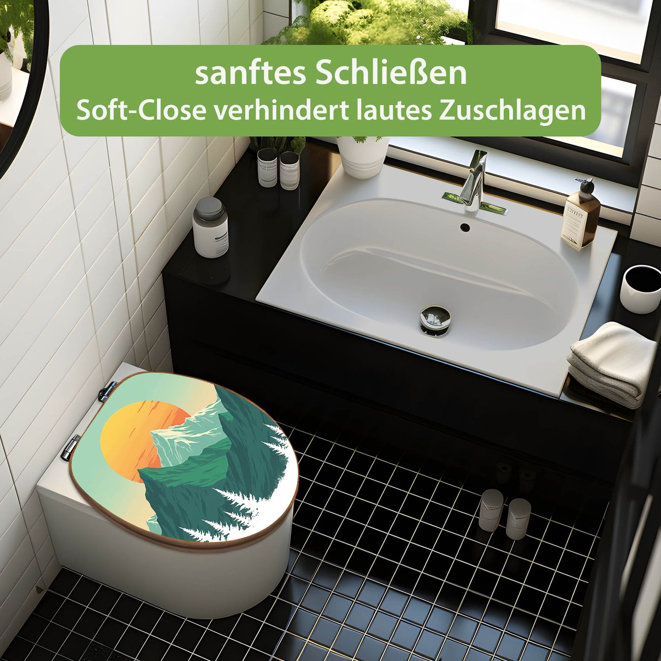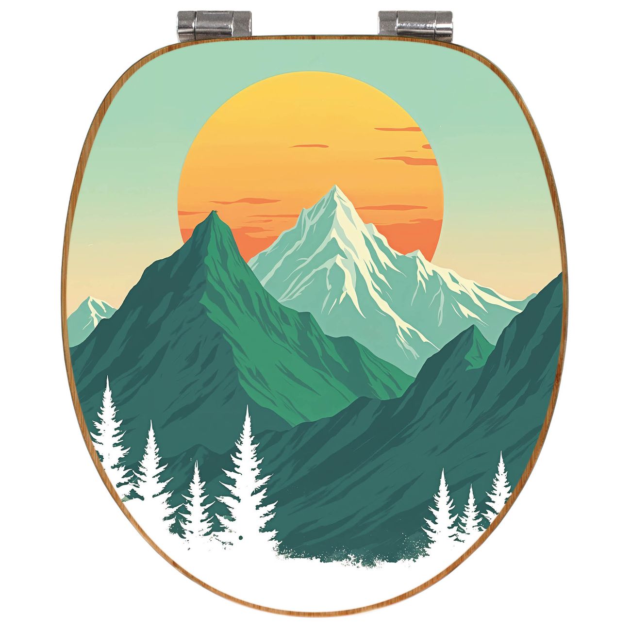 Design WC-Sitz Bambus Absenkautomatik Motiv Sonnenaufgang über den Bergen