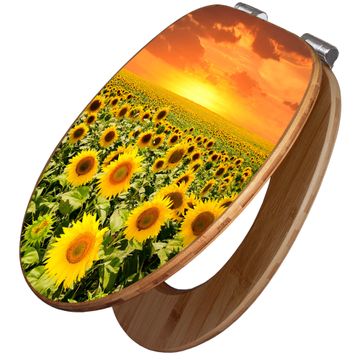 Design WC-Sitz Bambus Absenkautomatik Motiv Sonnenblumenmeer
