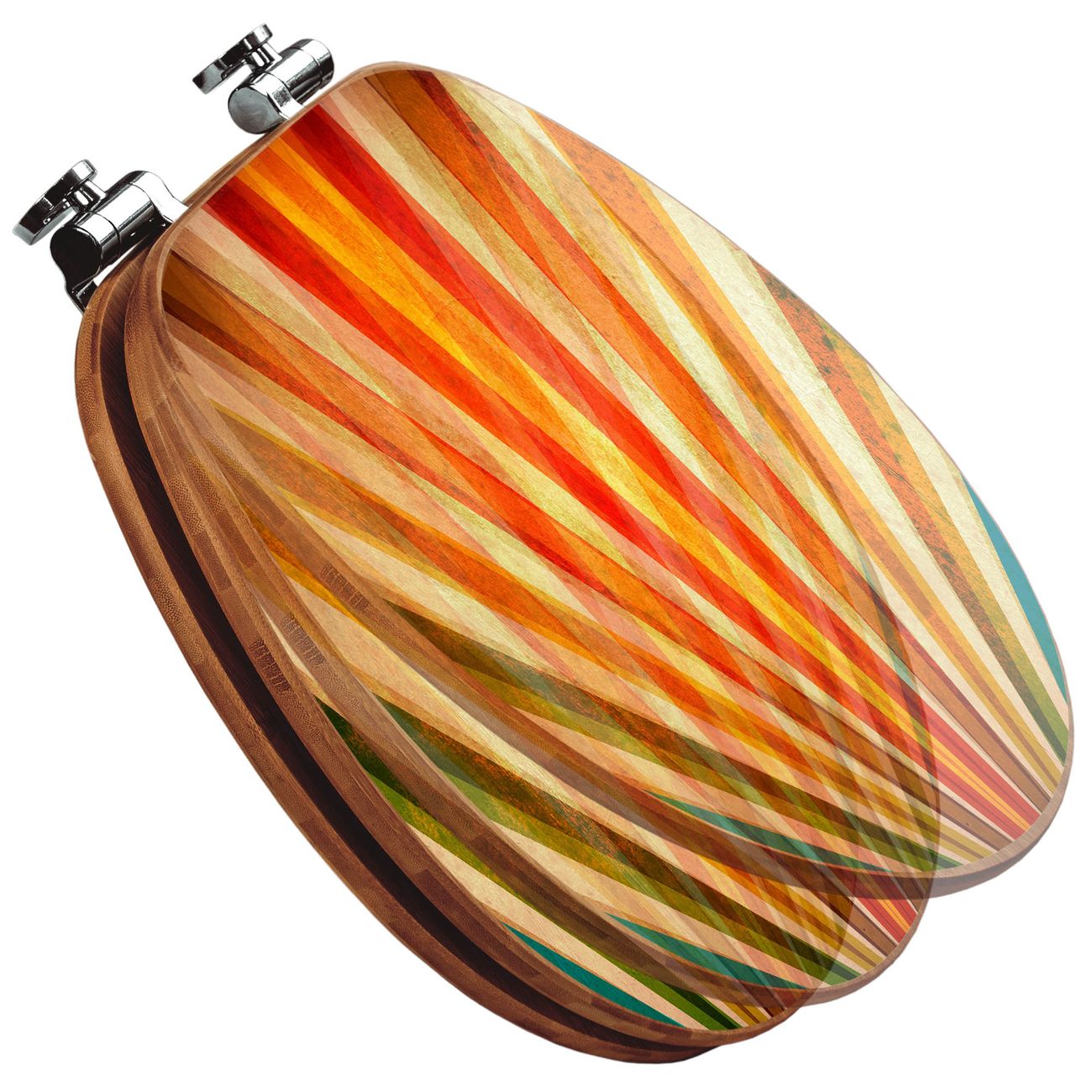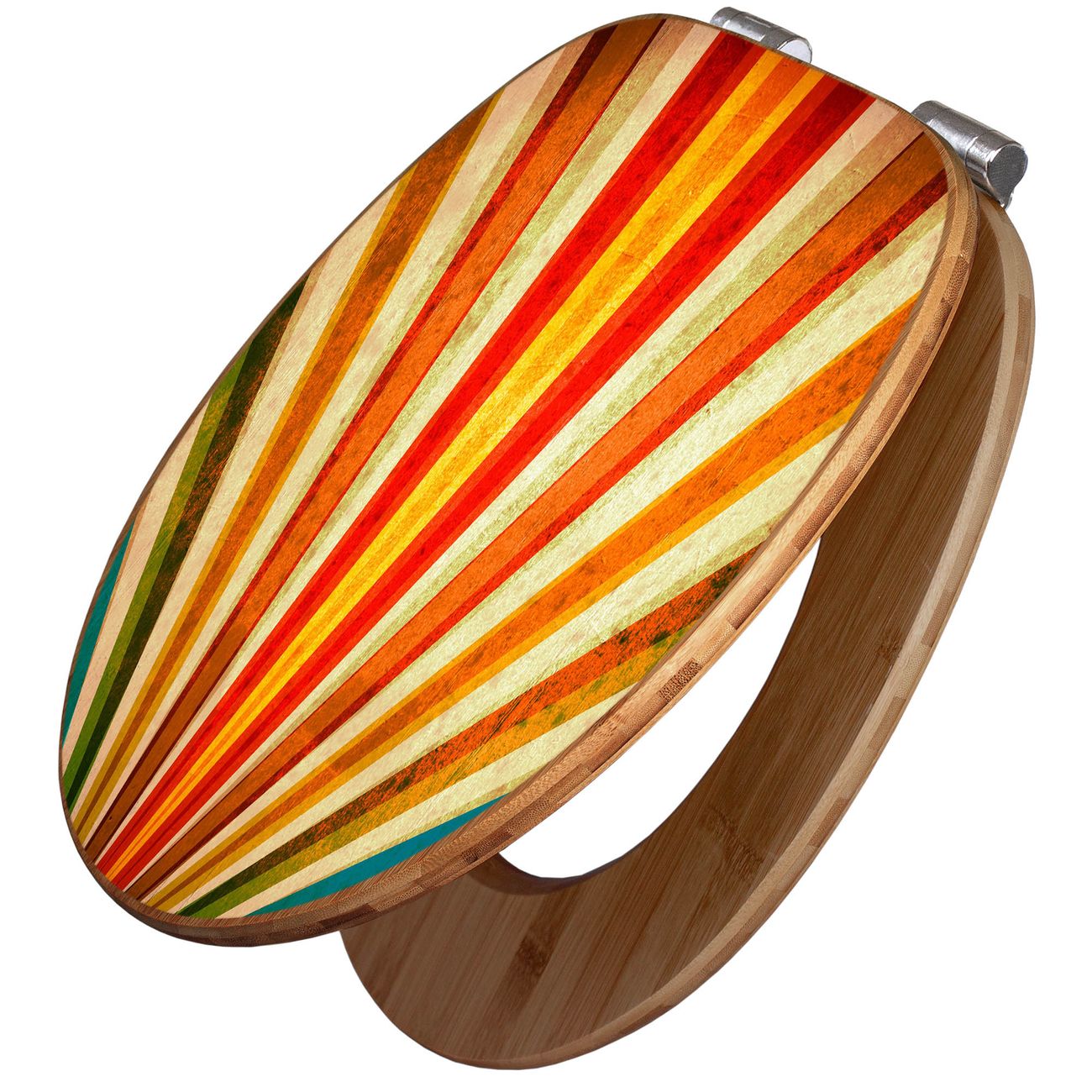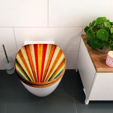Mit dem banjado Toilettensitz in Bambus verbinden Sie Design und Funktionalität. Sie erhalten den WC-Sitz mit bewährter Holz Qualität und Universal Scharnieren. Das Motiv Motiv Sonnenuntergang Abstrakt besteht aus einer schutzlaminierten Motivfolie, die durch das Schutzlaminat zusätzlich vor Kratzern schützt. Durch diesen Motivdruck wird der WC-Sitz zu einem Blickfang in Ihrem Bad.