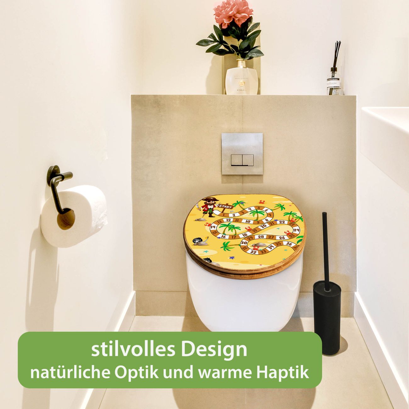 Design WC-Sitz Bambus Absenkautomatik Motiv Spielbrett 4