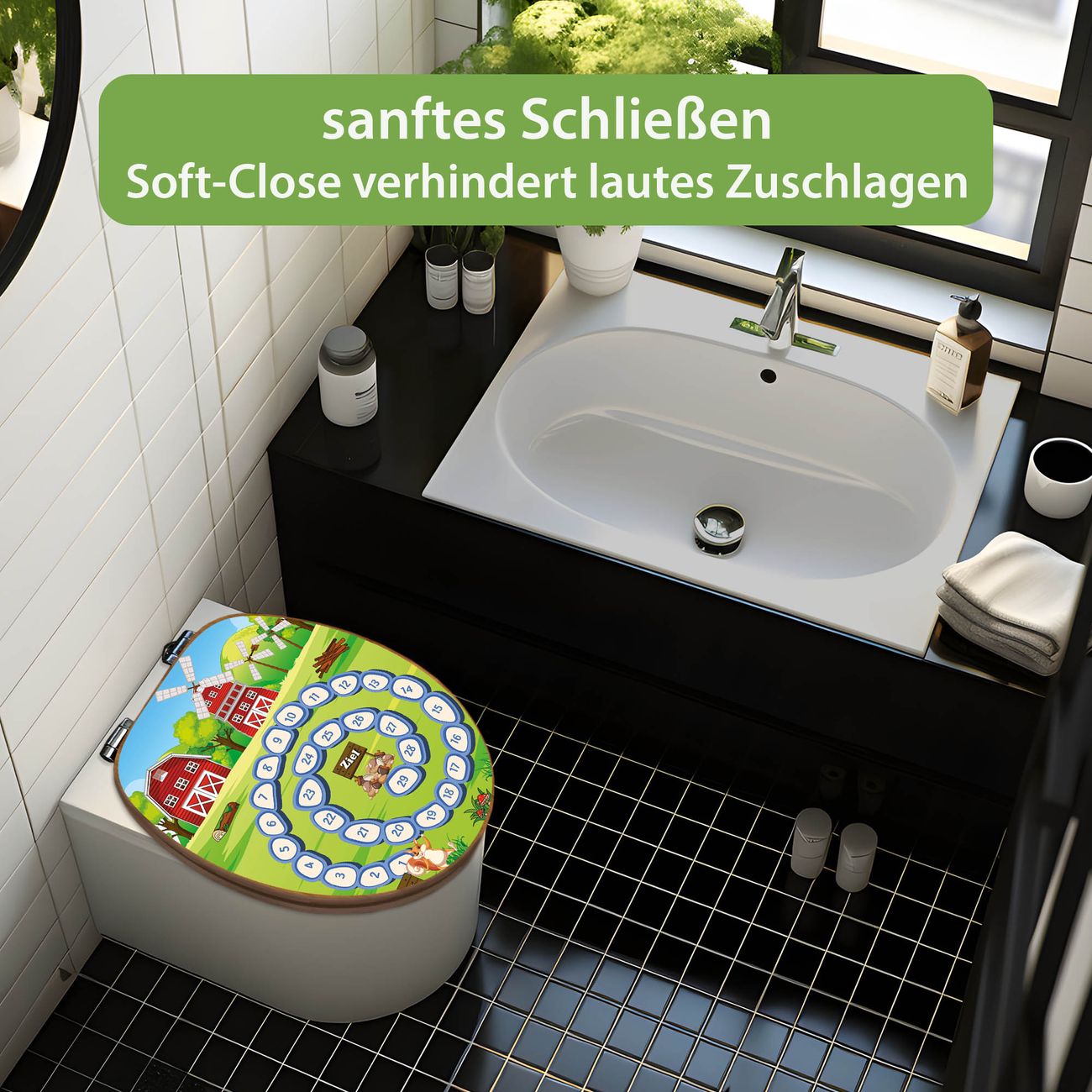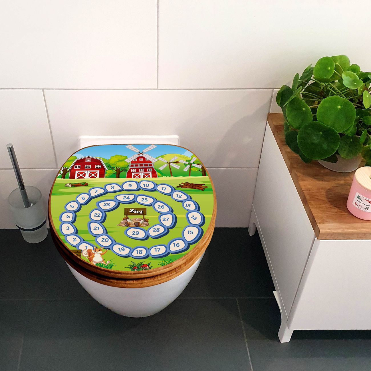 Design WC-Sitz Bambus Absenkautomatik Motiv Spielbrett 7