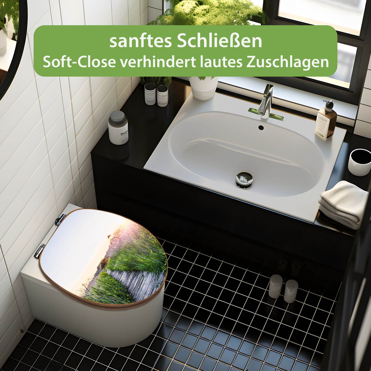 Design WC-Sitz Bambus Absenkautomatik Motiv Steg Durchs Schilf