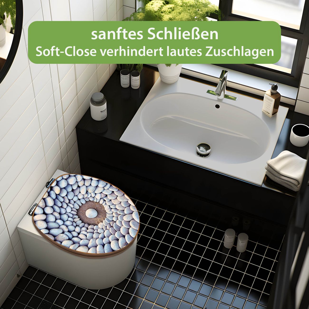 Design WC-Sitz Bambus Absenkautomatik Motiv Steinkreis