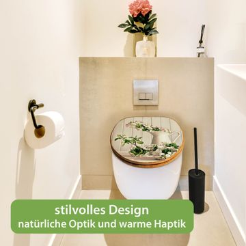 Mit dem banjado Toilettensitz in Bambus verbinden Sie Design und Funktionalität. Sie erhalten den WC-Sitz mit bewährter Holz Qualität und Universal Scharnieren. Das Motiv Motiv Stillleben Kirschblüten besteht aus einer schutzlaminierten Motivfolie, die durch das Schutzlaminat zusätzlich vor Kratzern schützt. Durch diesen Motivdruck wird der WC-Sitz zu einem Blickfang in Ihrem Bad.
