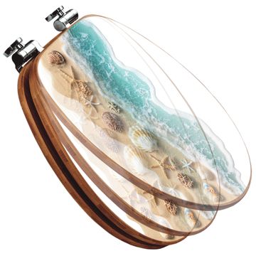 Mit dem banjado Toilettensitz in Bambus verbinden Sie Design und Funktionalität. Sie erhalten den WC-Sitz mit bewährter Holz Qualität und Universal Scharnieren. Das Motiv Motiv Strandparadies besteht aus einer schutzlaminierten Motivfolie, die durch das Schutzlaminat zusätzlich vor Kratzern schützt. Durch diesen Motivdruck wird der WC-Sitz zu einem Blickfang in Ihrem Bad.