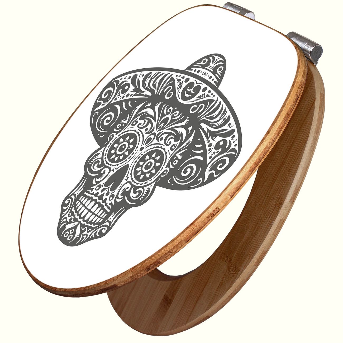 Design WC-Sitz Bambus Absenkautomatik Motiv Sugar Skull Design