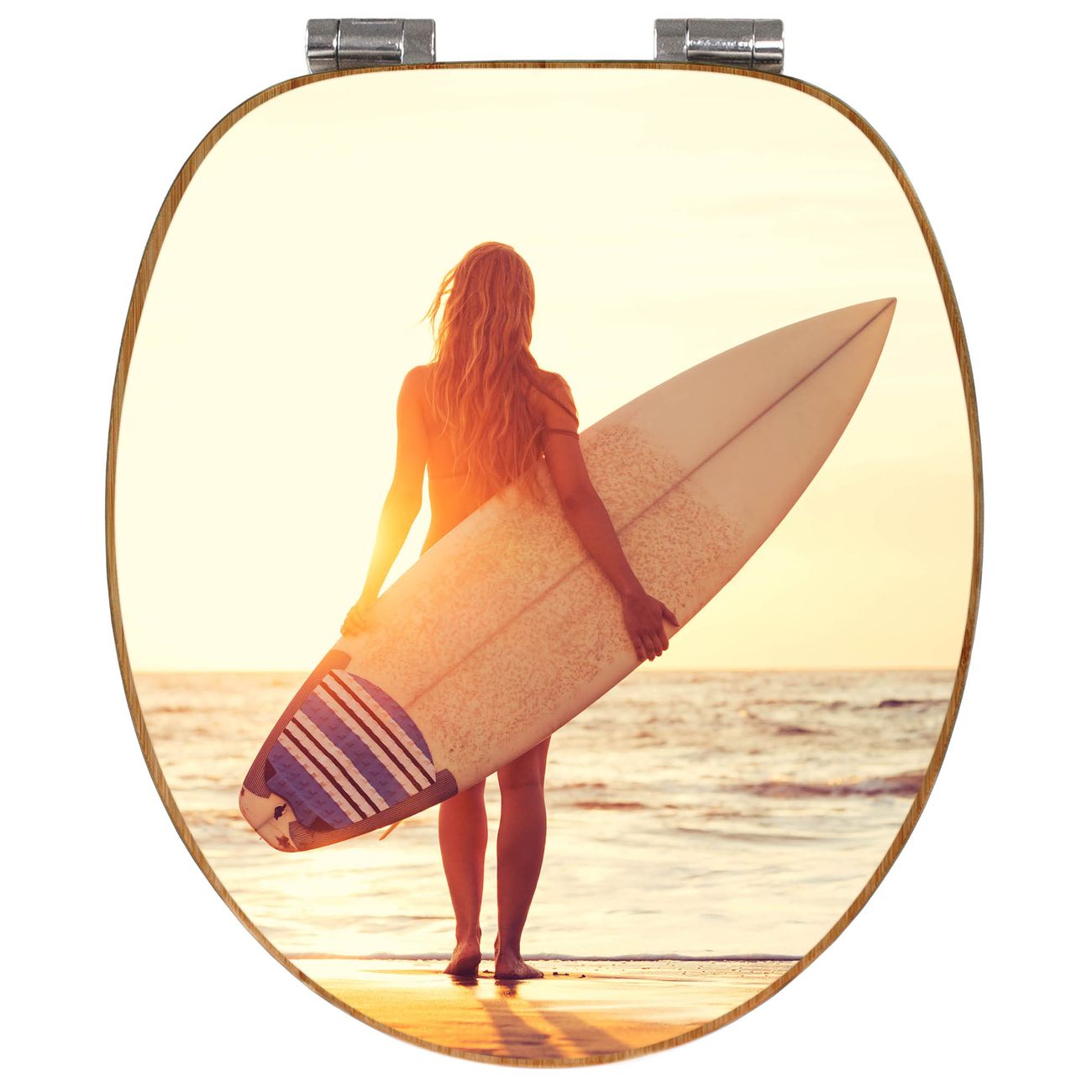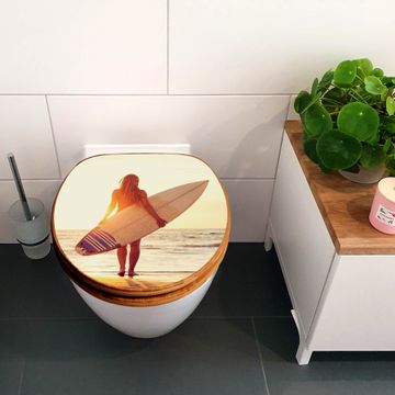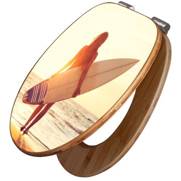 Design WC-Sitz Bambus Absenkautomatik Motiv Surfer Girl