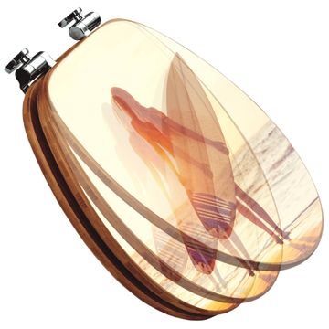 Mit dem banjado Toilettensitz in Bambus verbinden Sie Design und Funktionalität. Sie erhalten den WC-Sitz mit bewährter Holz Qualität und Universal Scharnieren. Das Motiv Motiv Surfer Girl besteht aus einer schutzlaminierten Motivfolie, die durch das Schutzlaminat zusätzlich vor Kratzern schützt. Durch diesen Motivdruck wird der WC-Sitz zu einem Blickfang in Ihrem Bad.