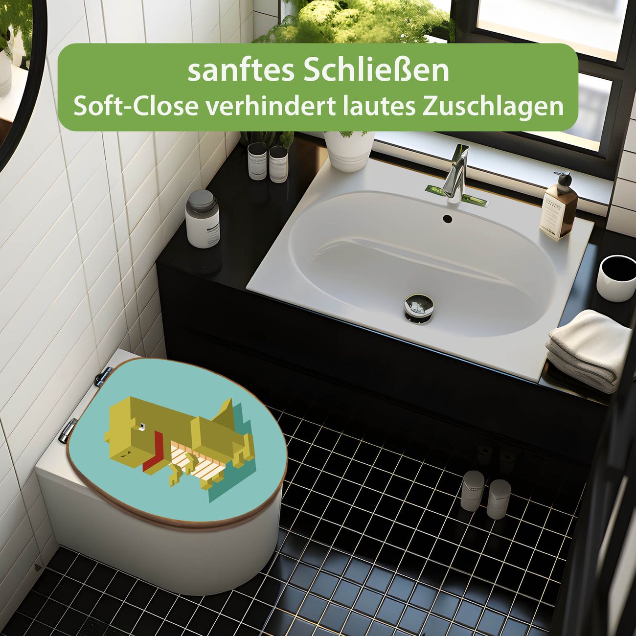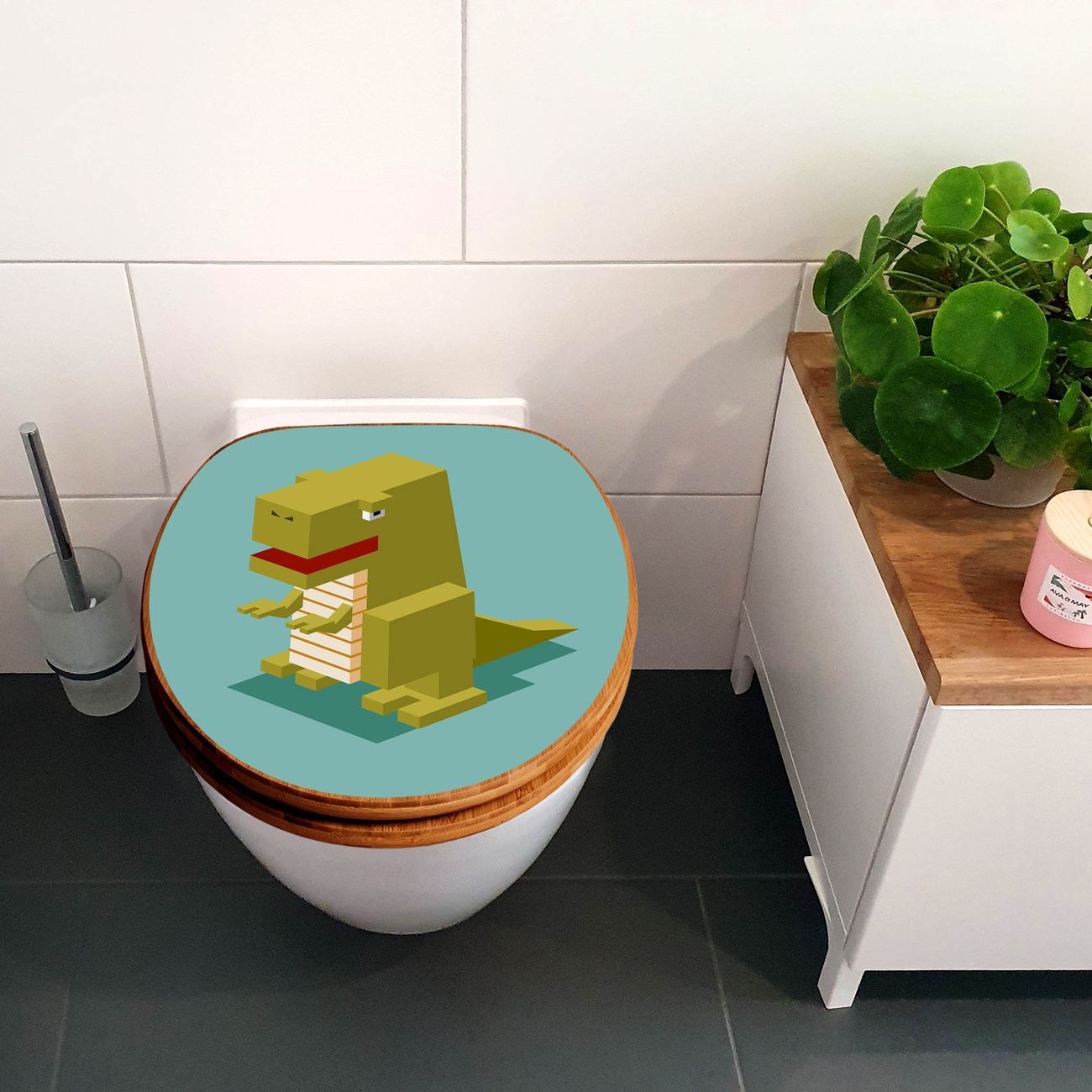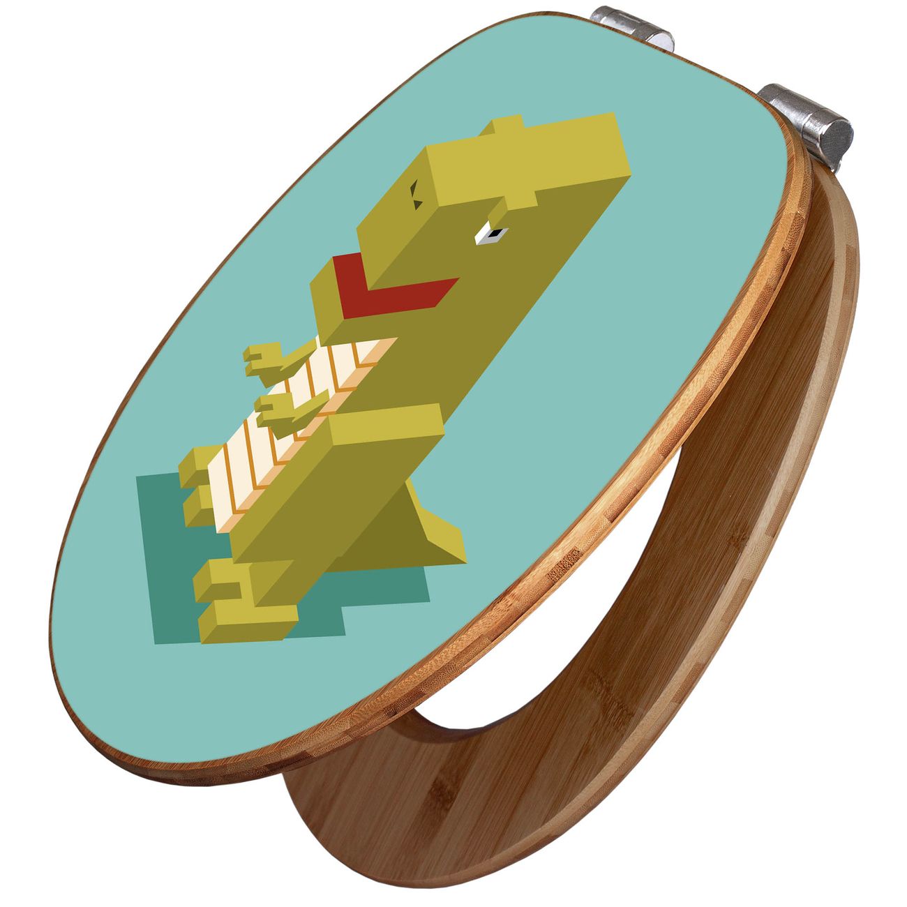 Design WC-Sitz Bambus Absenkautomatik Motiv T-Rex Block