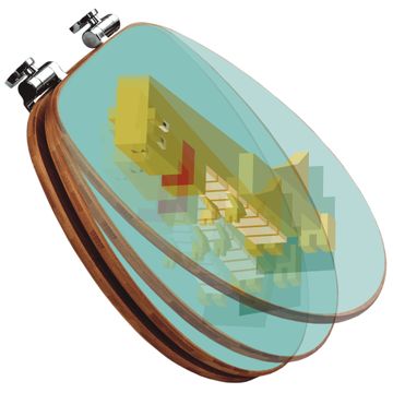Mit dem banjado Toilettensitz in Bambus verbinden Sie Design und Funktionalität. Sie erhalten den WC-Sitz mit bewährter Holz Qualität und Universal Scharnieren. Das Motiv Motiv T-Rex Block besteht aus einer schutzlaminierten Motivfolie, die durch das Schutzlaminat zusätzlich vor Kratzern schützt. Durch diesen Motivdruck wird der WC-Sitz zu einem Blickfang in Ihrem Bad.