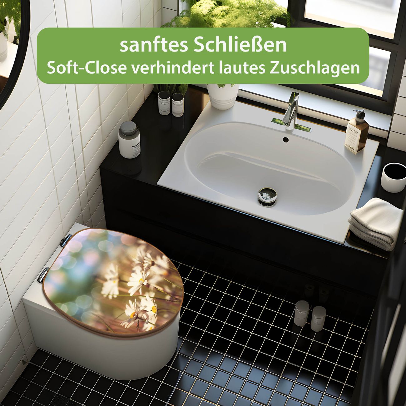 Design WC-Sitz Bambus Absenkautomatik Motiv Tausendschönwiese