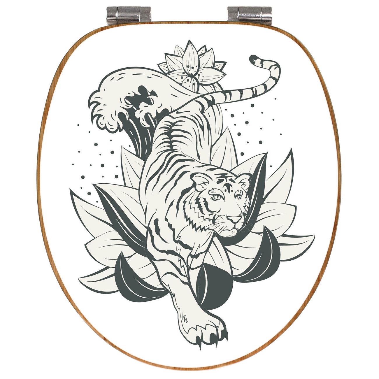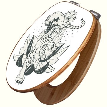 Design WC-Sitz Bambus Absenkautomatik Motiv Tiger und Lotusblüte