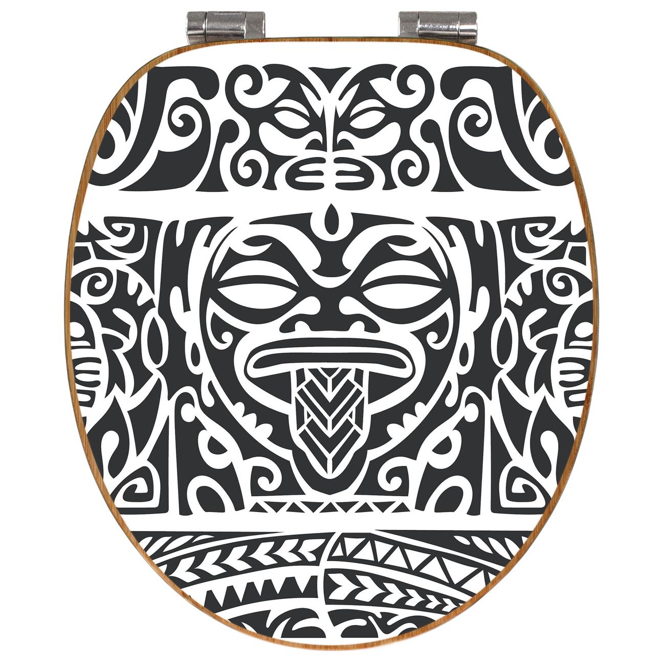 Mit dem banjado Toilettensitz in Bambus verbinden Sie Design und Funktionalität. Sie erhalten den WC-Sitz mit bewährter Holz Qualität und Universal Scharnieren. Das Motiv Motiv Tribal Muster besteht aus einer schutzlaminierten Motivfolie, die durch das Schutzlaminat zusätzlich vor Kratzern schützt. Durch diesen Motivdruck wird der WC-Sitz zu einem Blickfang in Ihrem Bad.