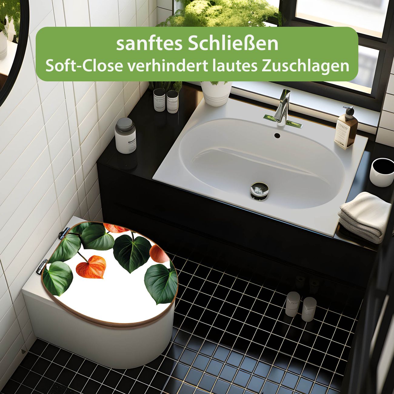Design WC-Sitz Bambus Absenkautomatik Motiv Tropische Blütenpracht